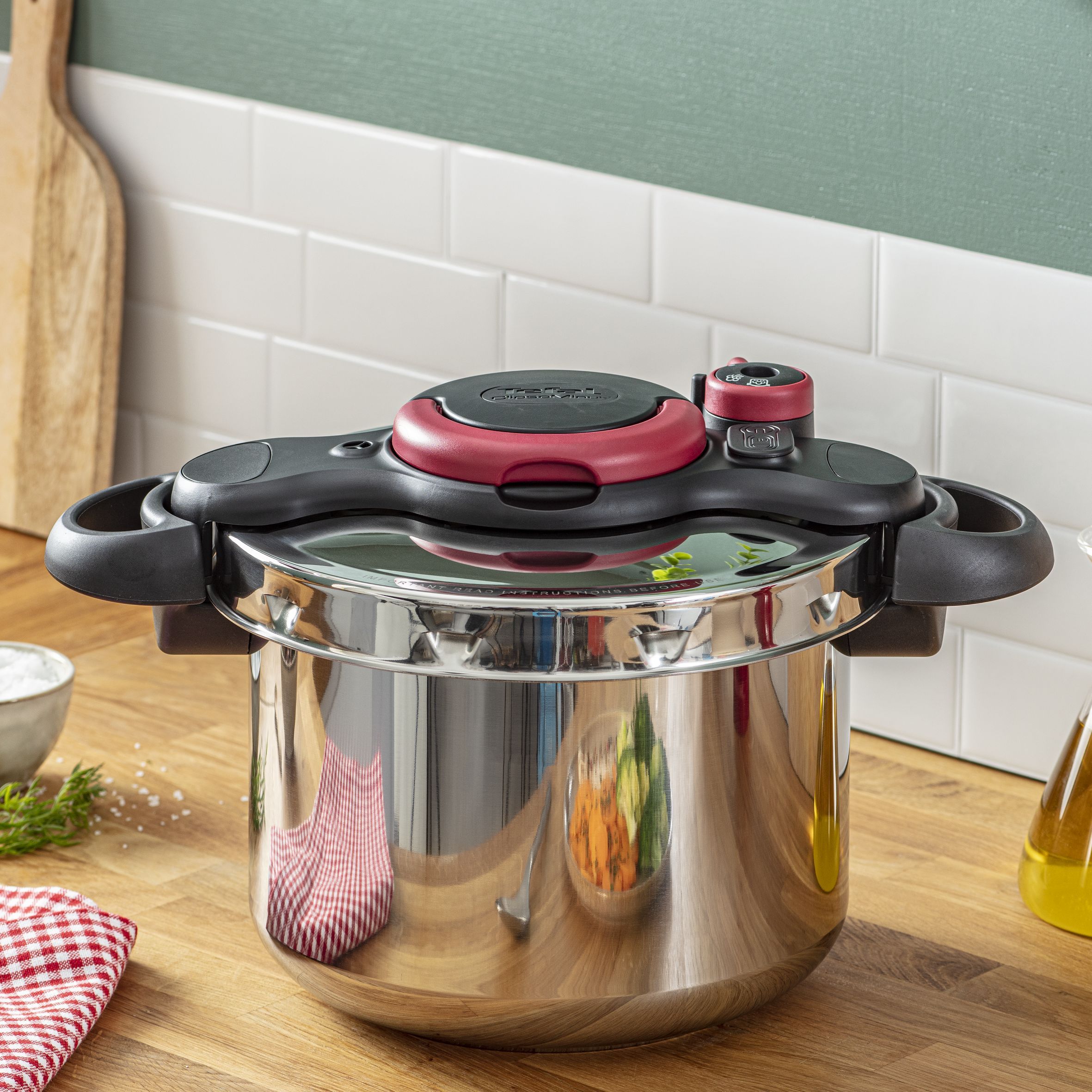 Oala sub presiune TEFAL ClipsoMinut' Easy este ușor de manevrat: o poți deschide sau închide folosind o singură mână.