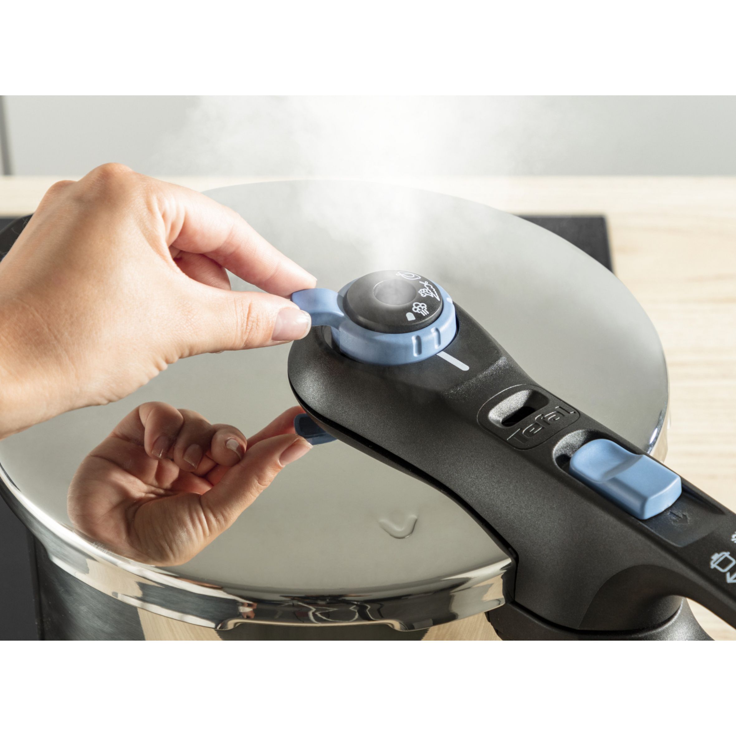 Oala sub presiune poate începe procesul de gătit rapid doar atunci când capacul este sigilat și blocat. Supapa de funcționare reglează presiunea. Daca ieșirea aburului este blocată, intră în acțiune supapa de siguranță, urmată în cele din urmă de deformarea garniturii, garantând siguranța în utilizare. În cele din urmă, mânerul de deschidere poate fi acționat doar atunci când oala nu este supusă presiunii.