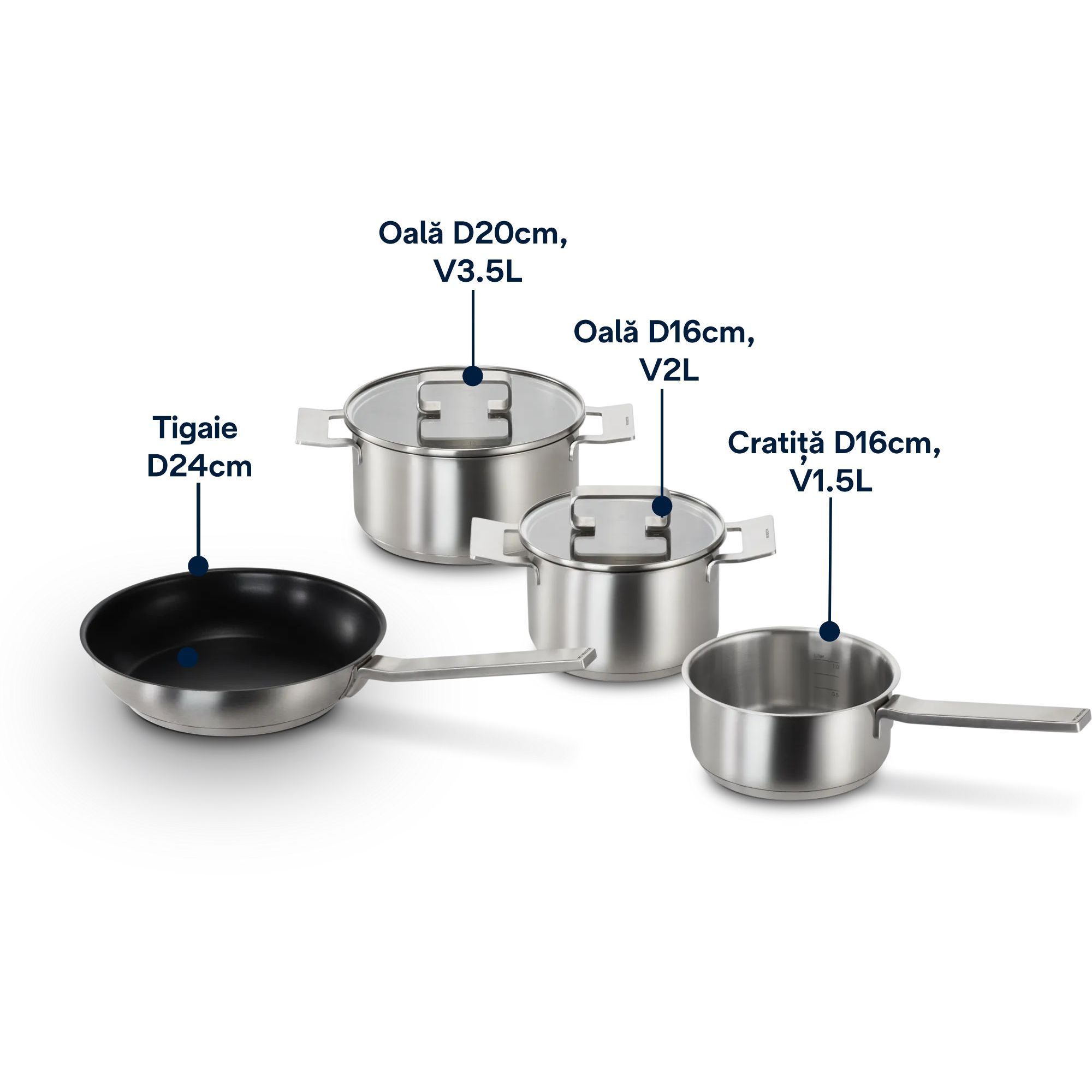 • 1x Oală pentru tocănițe din oțel inoxidabil 18/10 cu mânere fixe D16cm (V2L)