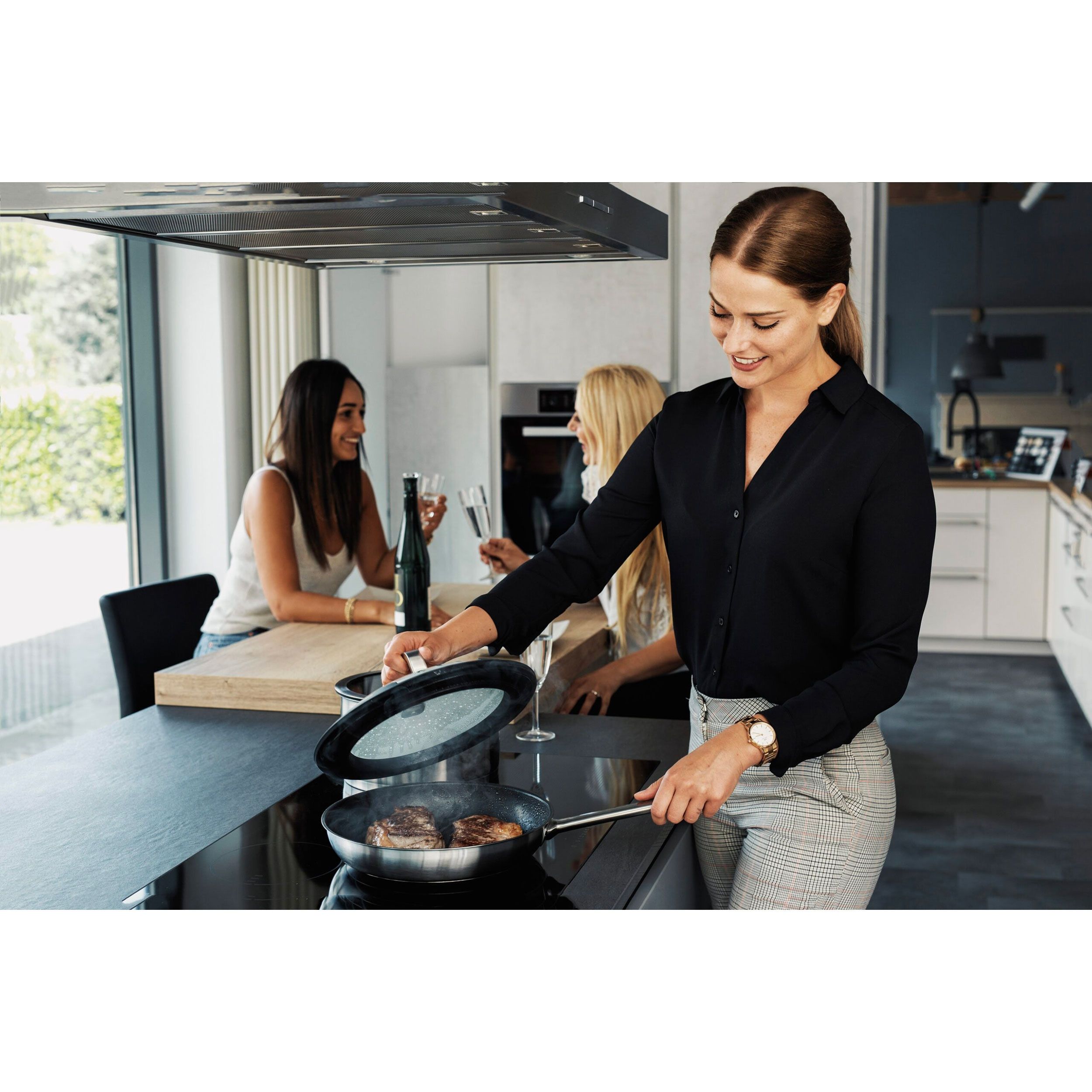 Set de 2 tigăi AMCook by BergHOFF Senna S3 8500731 - 17004686, D28cm, D24cm, Capac Gourmet 24~28cm ce adună condensul, Oțel inoxidabil 18/10, Înveliș antiaderent, Design pentru utilizare intensă