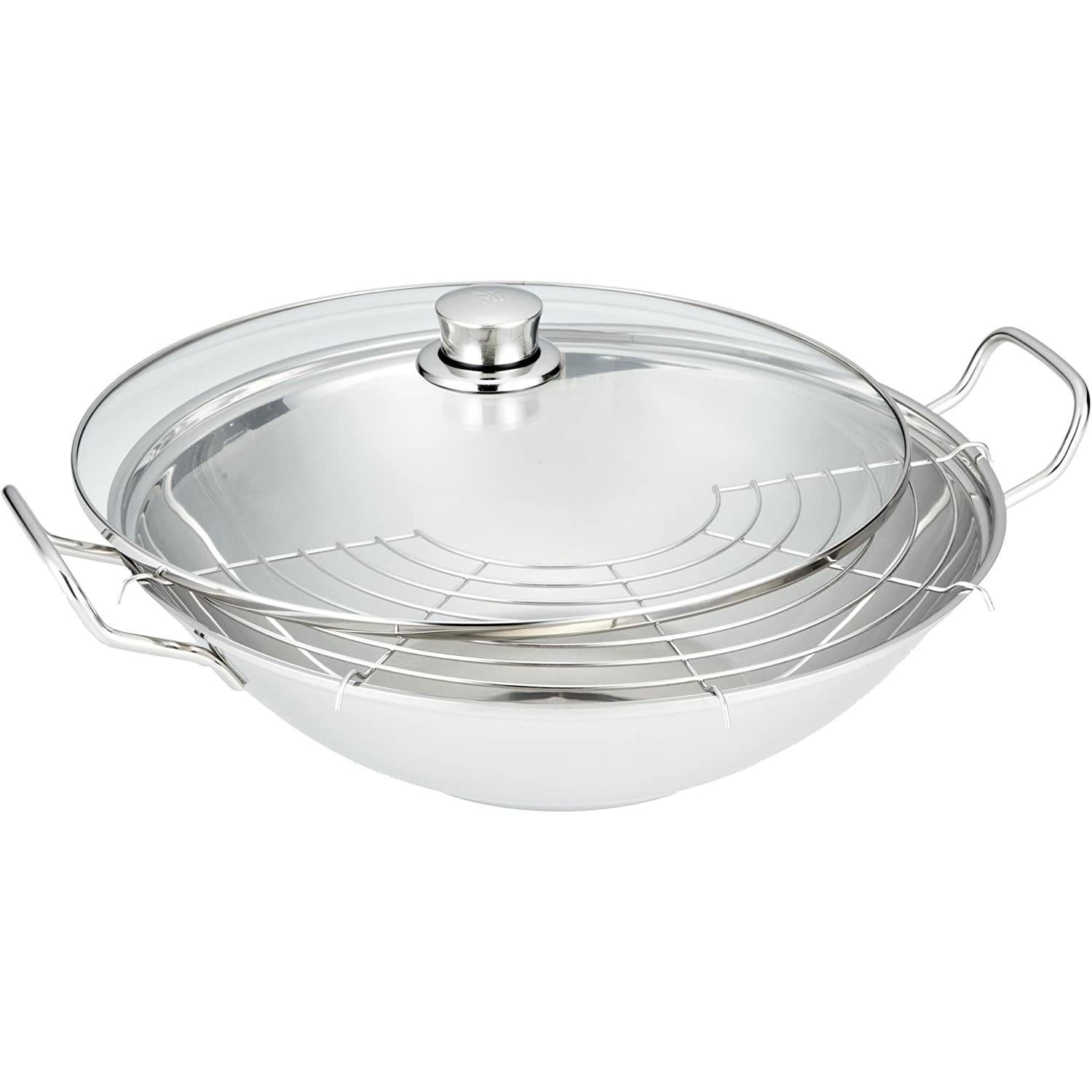 • Wok cu capac de sticlă și grilaj