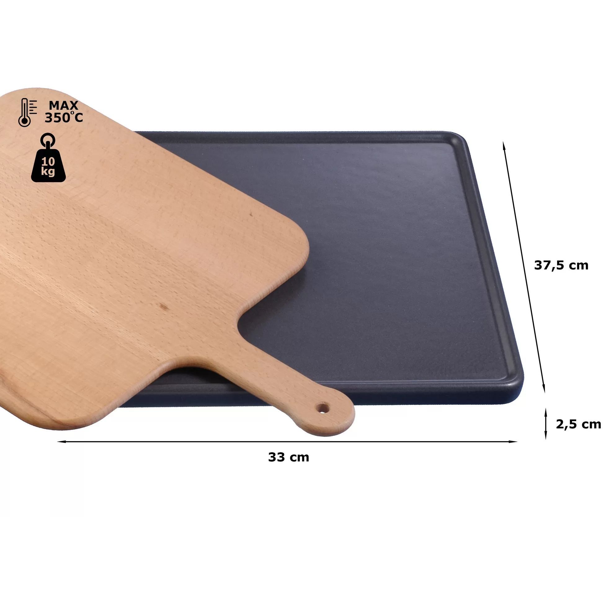 Piatră ceramică cu împingător de fag netratat NEFF Z1912X0 - 00463892, L37.5cm, l33cm, H2.50cm, G5.1kg, Greutate maximă paletă 10kg, Maximum 350°C, Ideală pentru pâine și pizza, Rez la piroliză, Anthracite