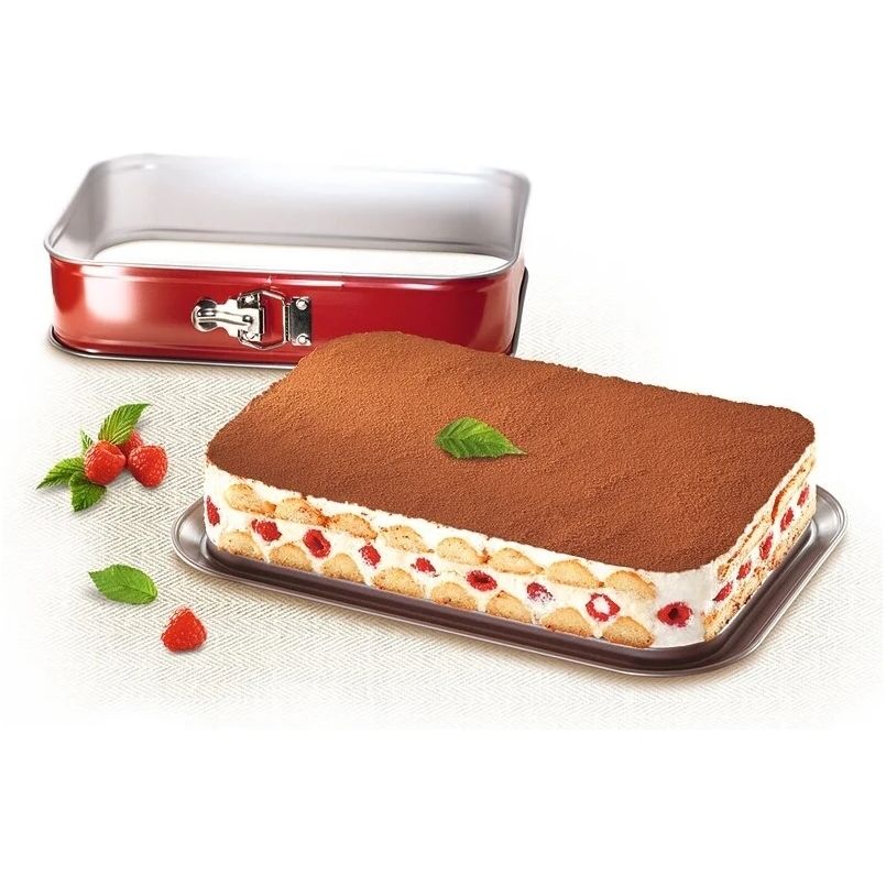Forma de copt dreptunghiulară de 36x24 de cm oferă o experiență unică de gătit datorită învelișului antiaderent și a marginii detașabile ce asigură o desprindere ușoară a preparatului fiind este ușor de curățat.