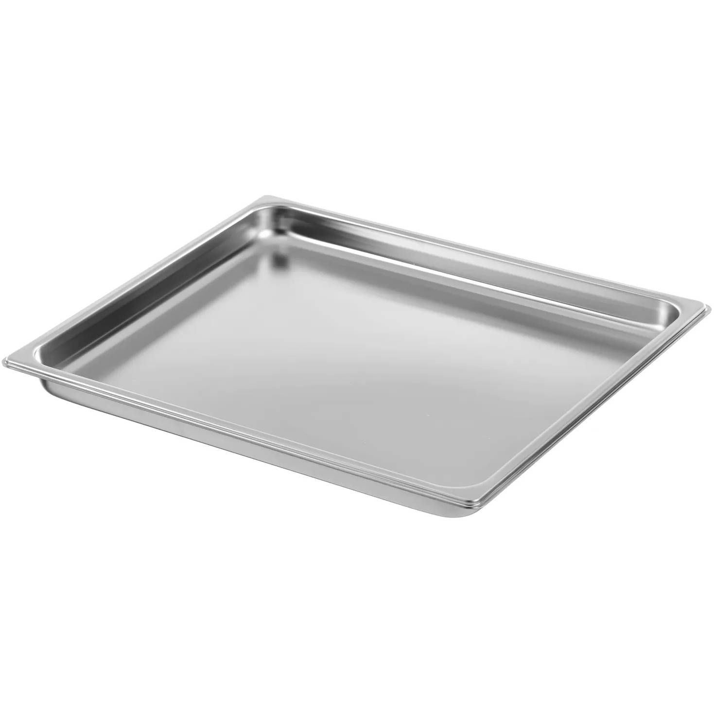 Tavă mare neperforată SIEMENS Large Unperforated Steam Oven Baking Tray HZ36D532 - 00664949, Gastronorm tray GN2/3, L35.4cm, l32.5cm, H4cm, Adâncime 2.8cm, Oțel inoxidabil, Pentru cuptoare cu aburi