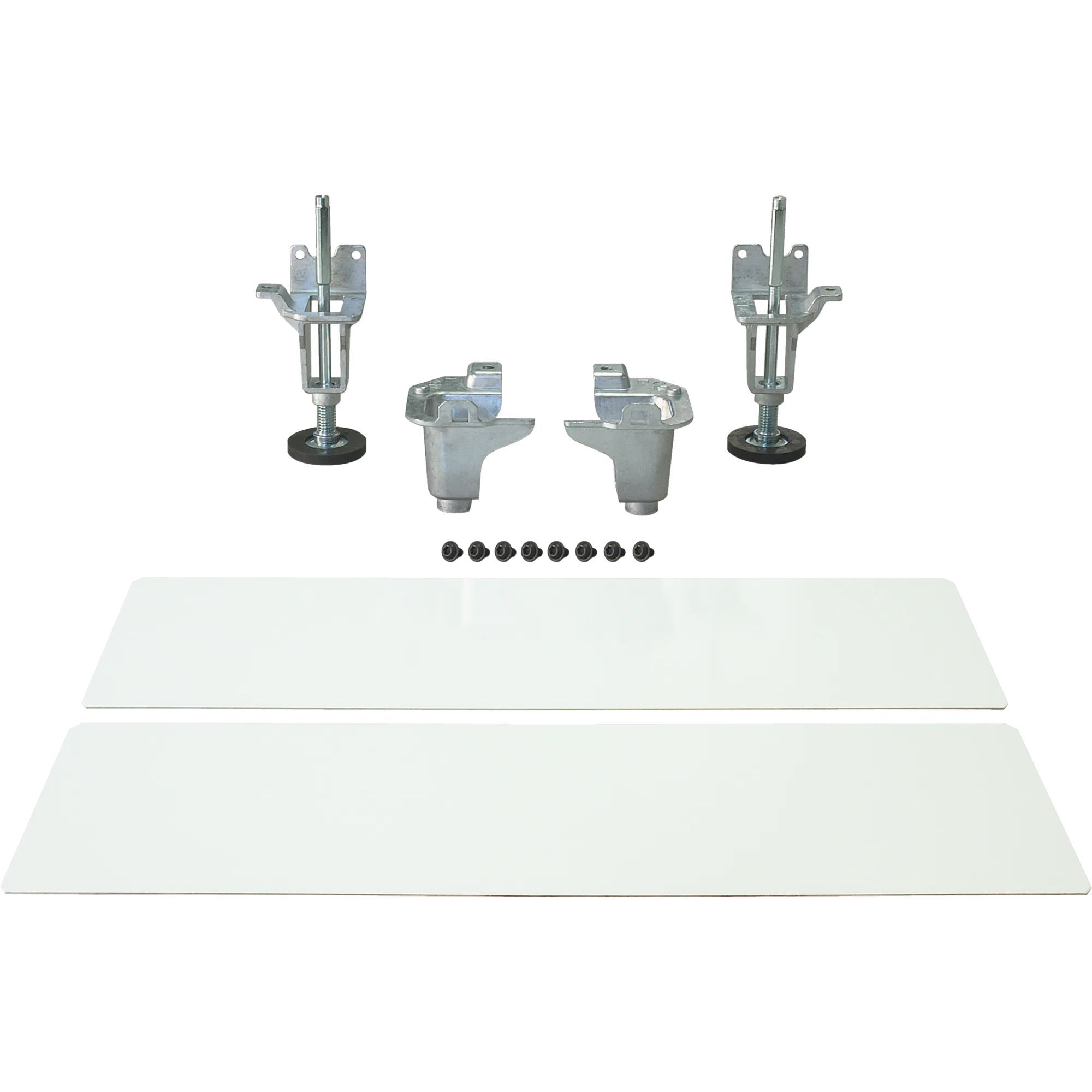 • Setul este format din 4 picioare, 2 plăci cu bandă autoadezivă (așezate pe podea) și șuruburi pentru fixarea picioarelor pe corpul mașinii;