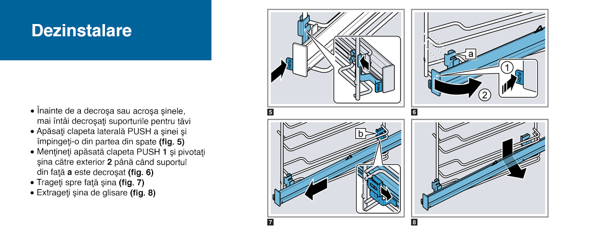 Nu sunt compatibile cu funcţia de piroliză. Înainte de curăţare, scoateţi şinele dacă aparatul este dotat cu funcţia de piroliză