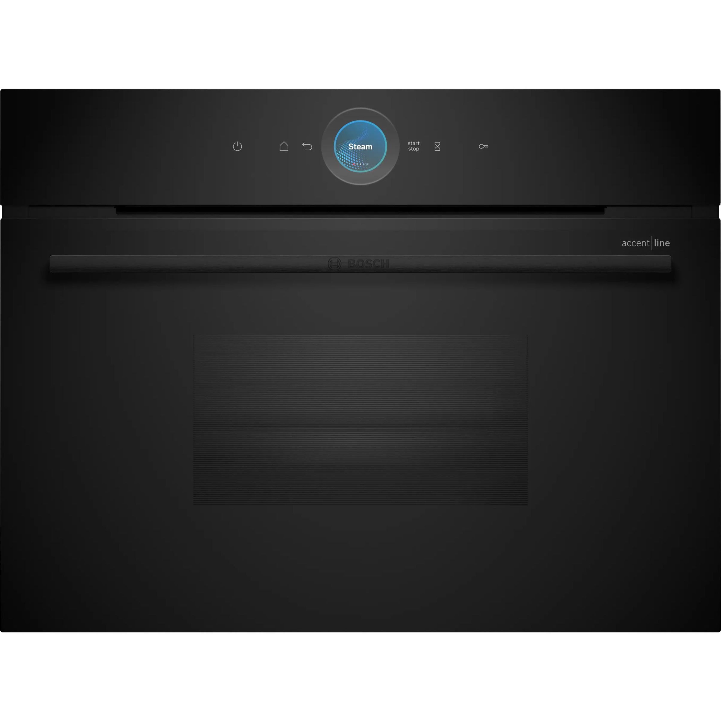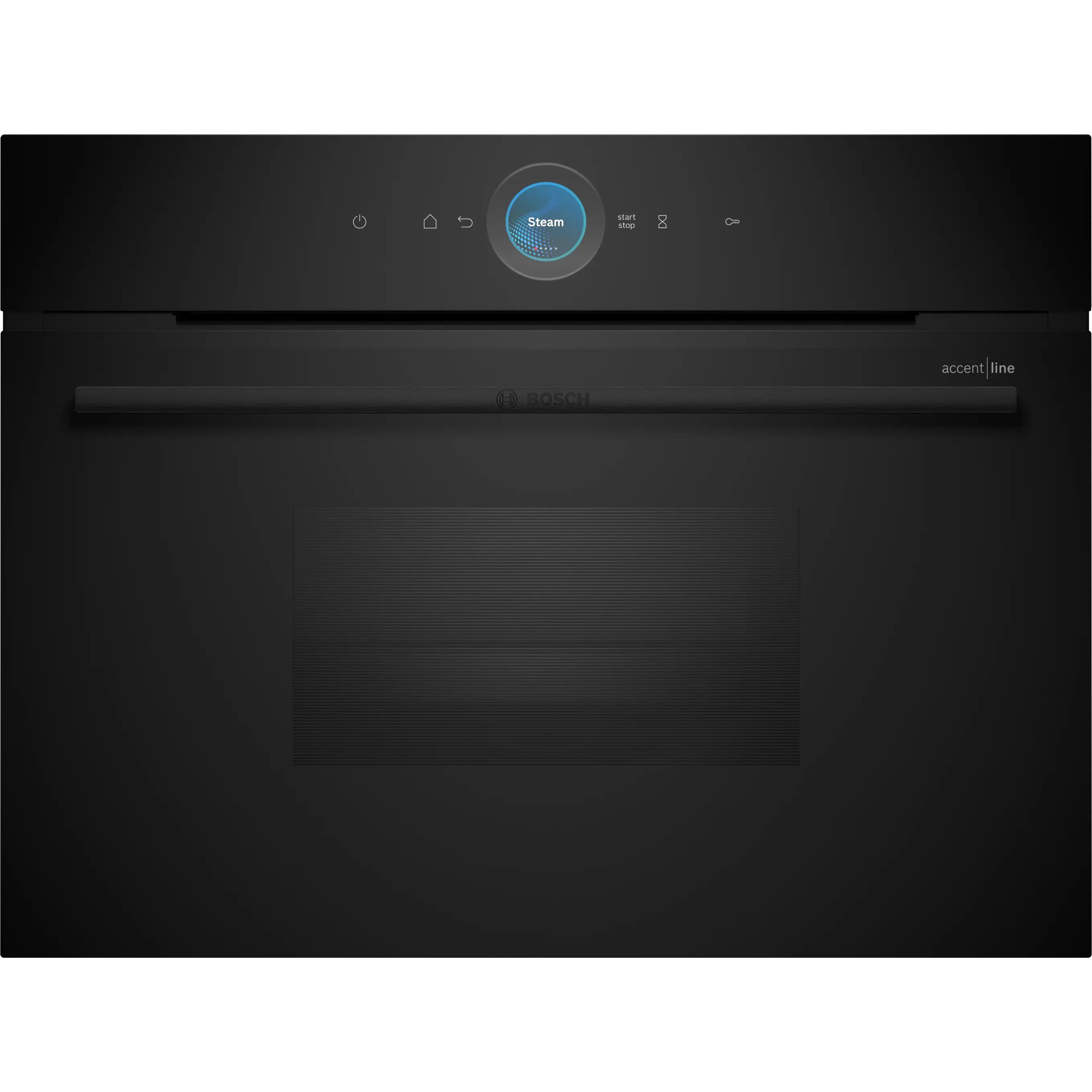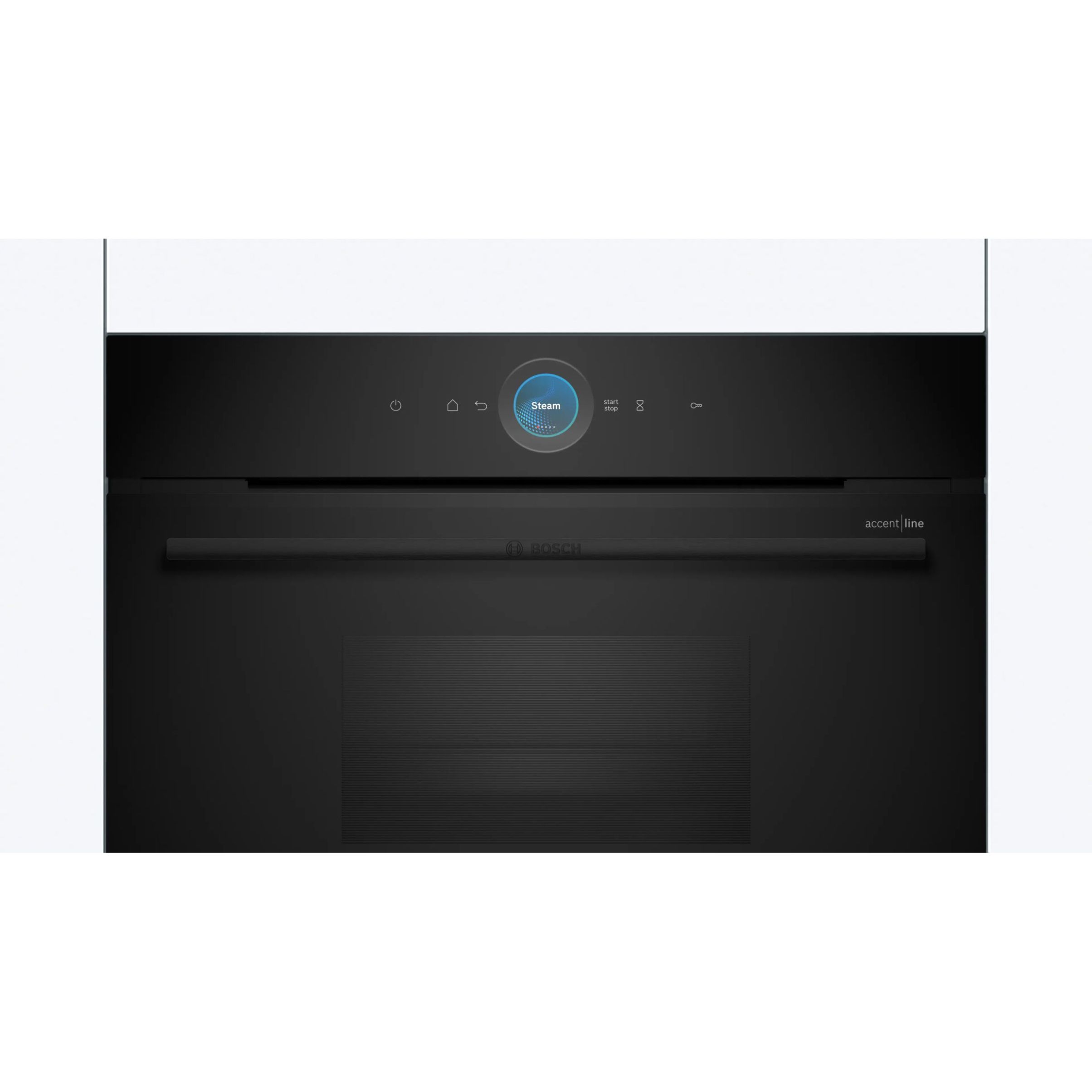 Cuptoarele Seria 8 din gama accent line sunt extrem de uşor de utilizat. Datorită finisajului lor complet negru, se potrivesc perfect cu orice mobilier de bucătărie, indiferent de stil. Iar inelul digital pentru comenzi este nu doar practic, ci şi conferă un plus de stil bucătăriei tale: acesta are un design minimalist atunci când este dezactivat şi se aprinde în culori calde atunci când este activat. De asemenea, navigarea în meniul cuptoarelor Seria 8 din gama accent line este extrem de simplă: poţi seta extrem de rapid şi uşor procesul de preparare şi temporizatorul direct pe afişajul tactil mare. Uşa cu geam fumuriu completează ingenios aspectul ultra-modern şi neted al cuptoarelor, iar tu poţi vedea în permanenţă preparatele din cuptor în timp ce acestea sunt gătite.