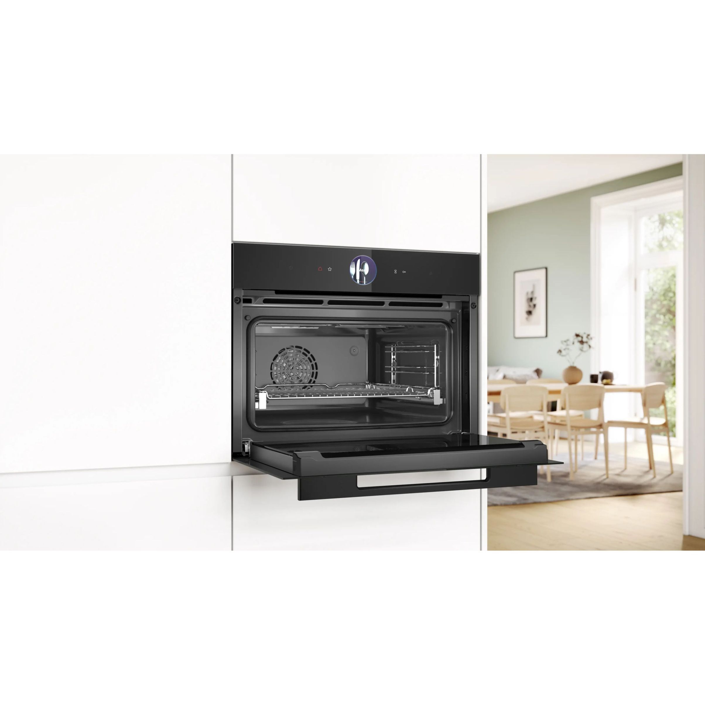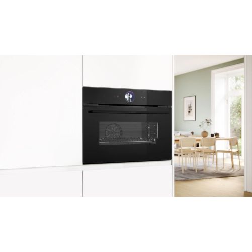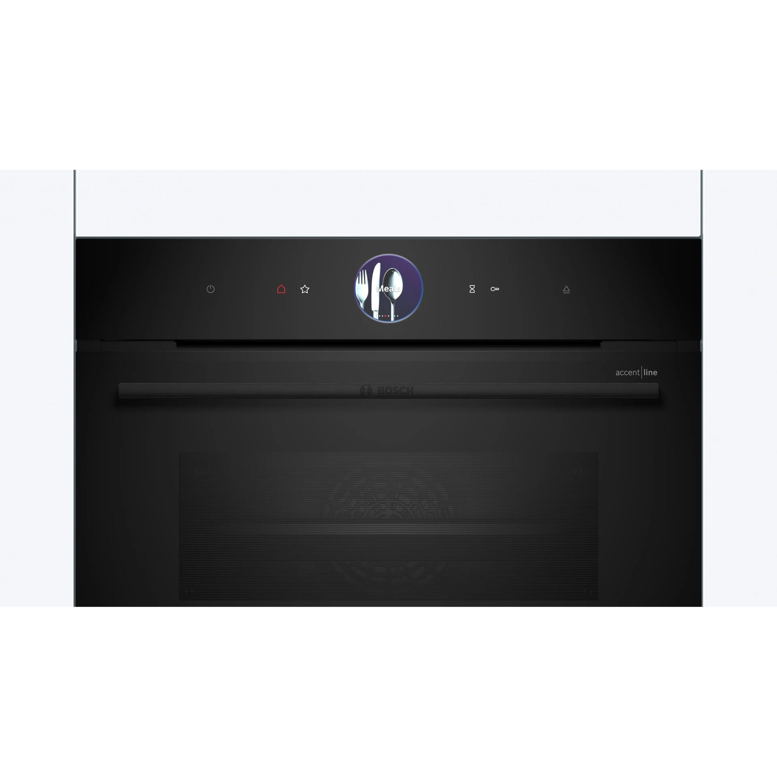Cuptoarele Seria 8 din gama accent line sunt extrem de uşor de utilizat. Datorită finisajului lor complet negru, se potrivesc perfect cu orice mobilier de bucătărie, indiferent de stil. Iar inelul digital pentru comenzi este nu doar practic, ci şi conferă un plus de stil bucătăriei tale: acesta are un design minimalist atunci când este dezactivat şi se aprinde în culori calde atunci când este activat. De asemenea, navigarea în meniul cuptoarelor Seria 8 din gama accent line este extrem de simplă: poţi seta extrem de rapid şi uşor procesul de preparare şi temporizatorul direct pe afişajul tactil mare. Uşa cu geam fumuriu completează ingenios aspectul ultra-modern şi neted al cuptoarelor, iar tu poţi vedea în permanenţă preparatele din cuptor în timp ce acestea sunt gătite.