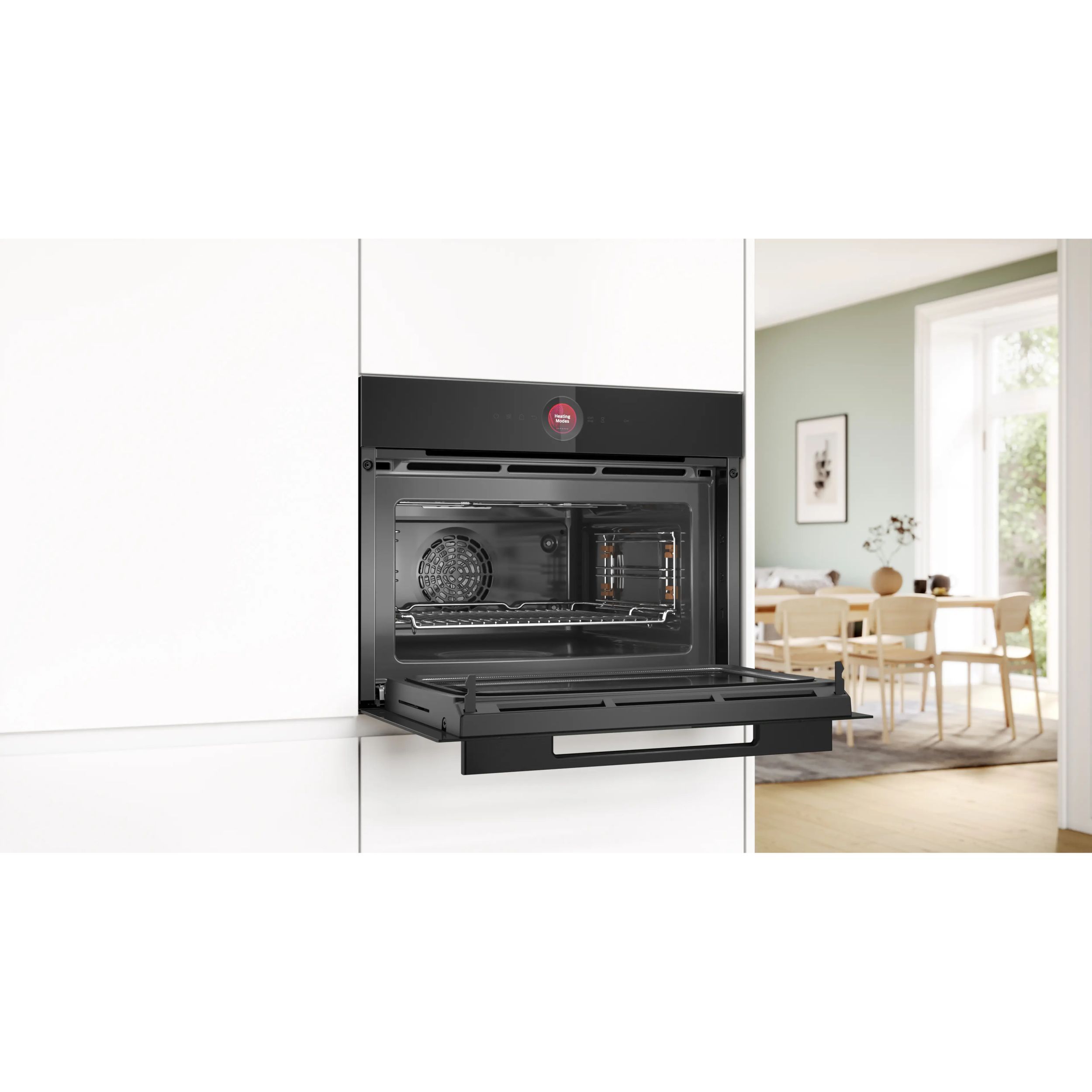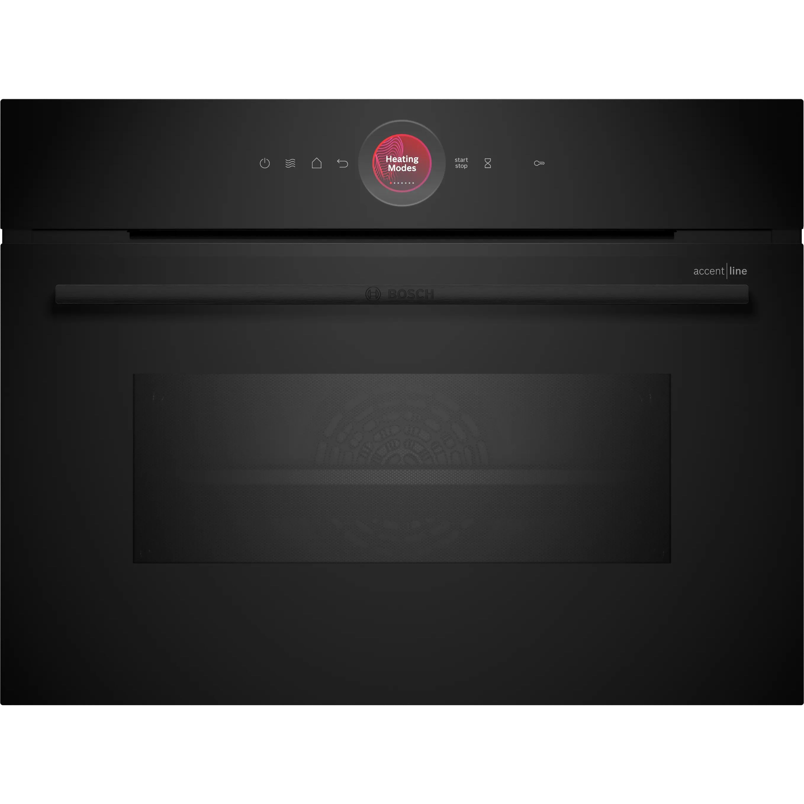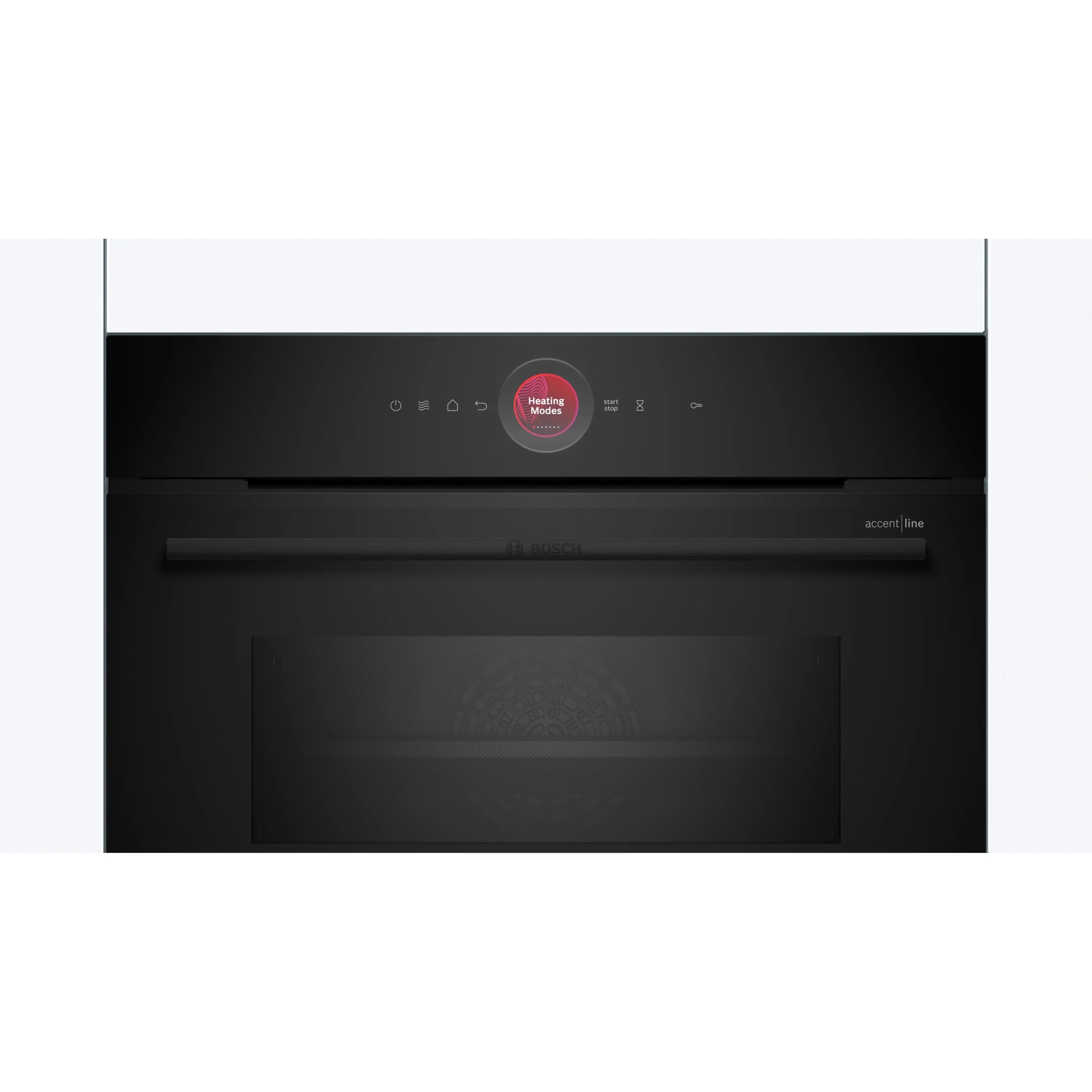 Cuptoarele Seria 8 din gama accent line sunt extrem de uşor de utilizat. Datorită finisajului lor complet negru, se potrivesc perfect cu orice mobilier de bucătărie, indiferent de stil. Iar inelul digital pentru comenzi este nu doar practic, ci şi conferă un plus de stil bucătăriei tale: acesta are un design minimalist atunci când este dezactivat şi se aprinde în culori calde atunci când este activat. De asemenea, navigarea în meniul cuptoarelor Seria 8 din gama accent line este extrem de simplă: poţi seta extrem de rapid şi uşor procesul de preparare şi temporizatorul direct pe afişajul tactil mare. Uşa cu geam fumuriu completează ingenios aspectul ultra-modern şi neted al cuptoarelor, iar tu poţi vedea în permanenţă preparatele din cuptor în timp ce acestea sunt gătite.