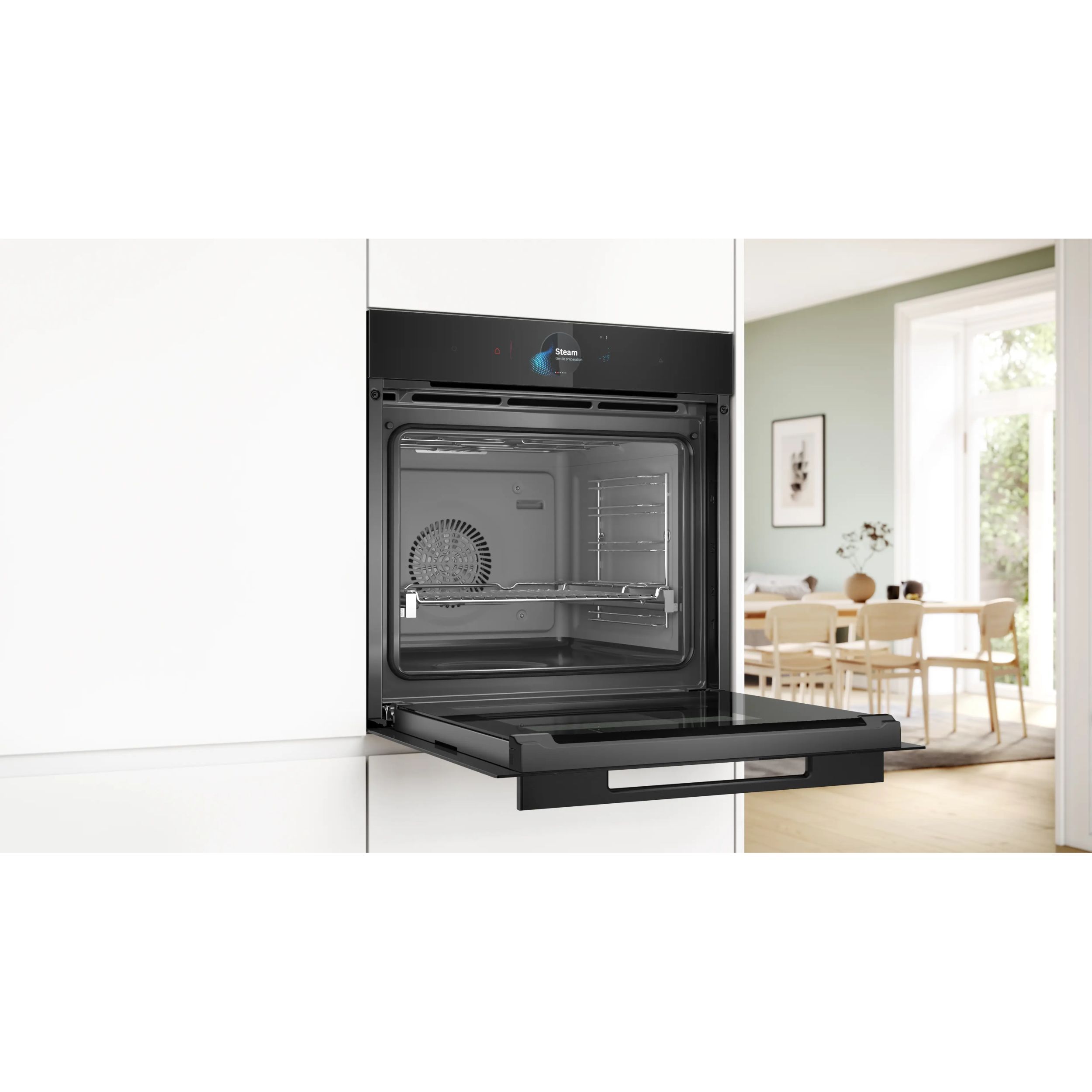 Coacerea preparatelor nu a fost niciodată mai simplă.Selectează un fel de mâncare, cum ar fi „Brioșe", apasă butonul „Start" și cuptorul va prelua controlul imediat.Partea cea mai bună: datorită inteligenței artificiale și a senzorului de coacere care măsoară umiditatea din interiorul cuptorului, poți vedea câte minute au mai rămas până când preparatul tău este gata să fie servit. Pentru a te bucura de funcția PerfectBake Plus, trebuie doar să conectezi cuptorul la contul înregistrat pe Home Connect.