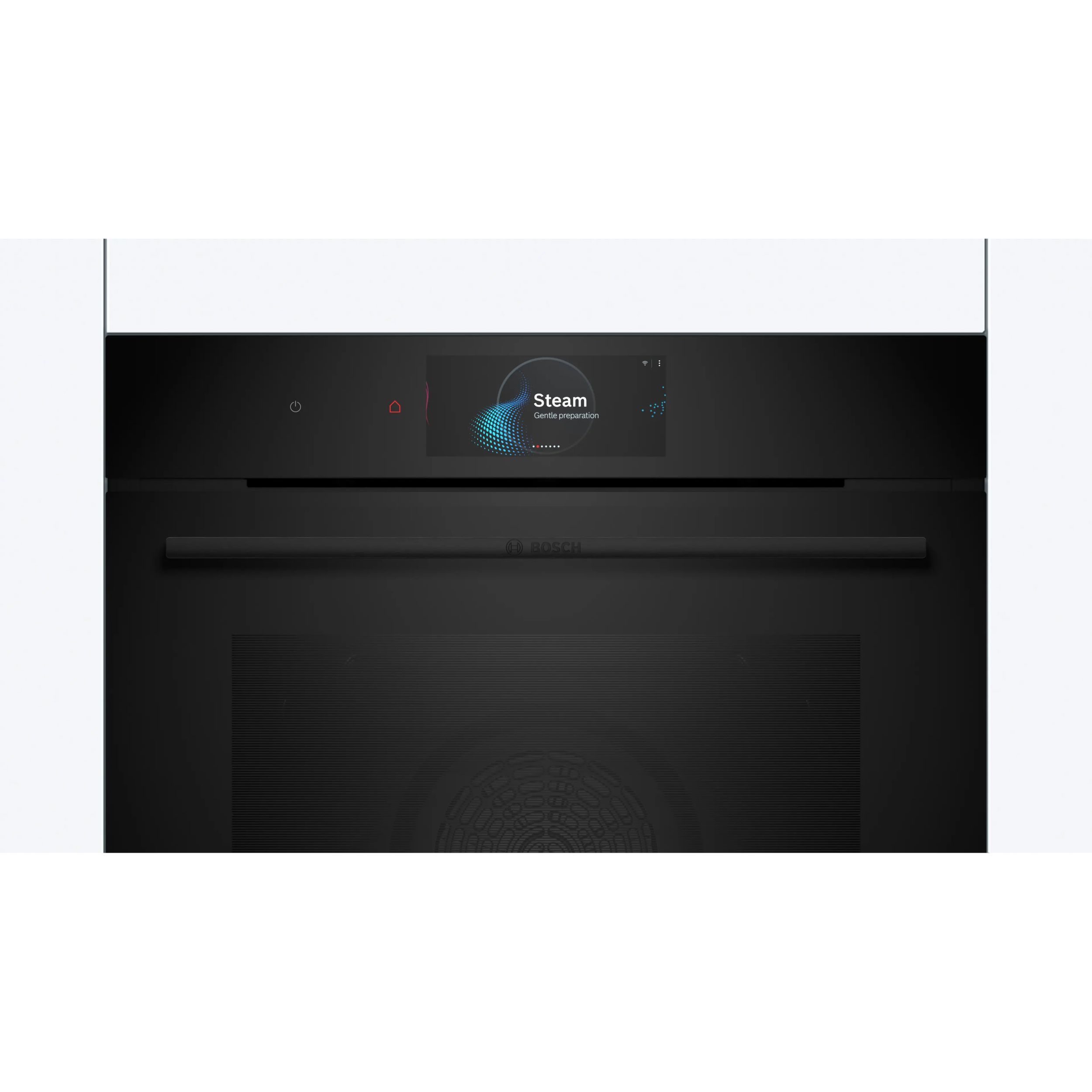 Cuptoarele Seria 8 din gama accent line sunt extrem de uşor de utilizat. Datorită finisajului lor complet negru, se potrivesc perfect cu orice mobilier de bucătărie, indiferent de stil. Iar inelul digital pentru comenzi este nu doar practic, ci şi conferă un plus de stil bucătăriei tale: acesta are un design minimalist atunci când este dezactivat şi se aprinde în culori calde atunci când este activat. De asemenea, navigarea în meniul cuptoarelor Seria 8 din gama accent line este extrem de simplă: poţi seta extrem de rapid şi uşor procesul de preparare şi temporizatorul direct pe afişajul tactil mare. Uşa cu geam fumuriu completează ingenios aspectul ultra-modern şi neted al cuptoarelor, iar tu poţi vedea în permanenţă preparatele din cuptor în timp ce acestea sunt gătite.