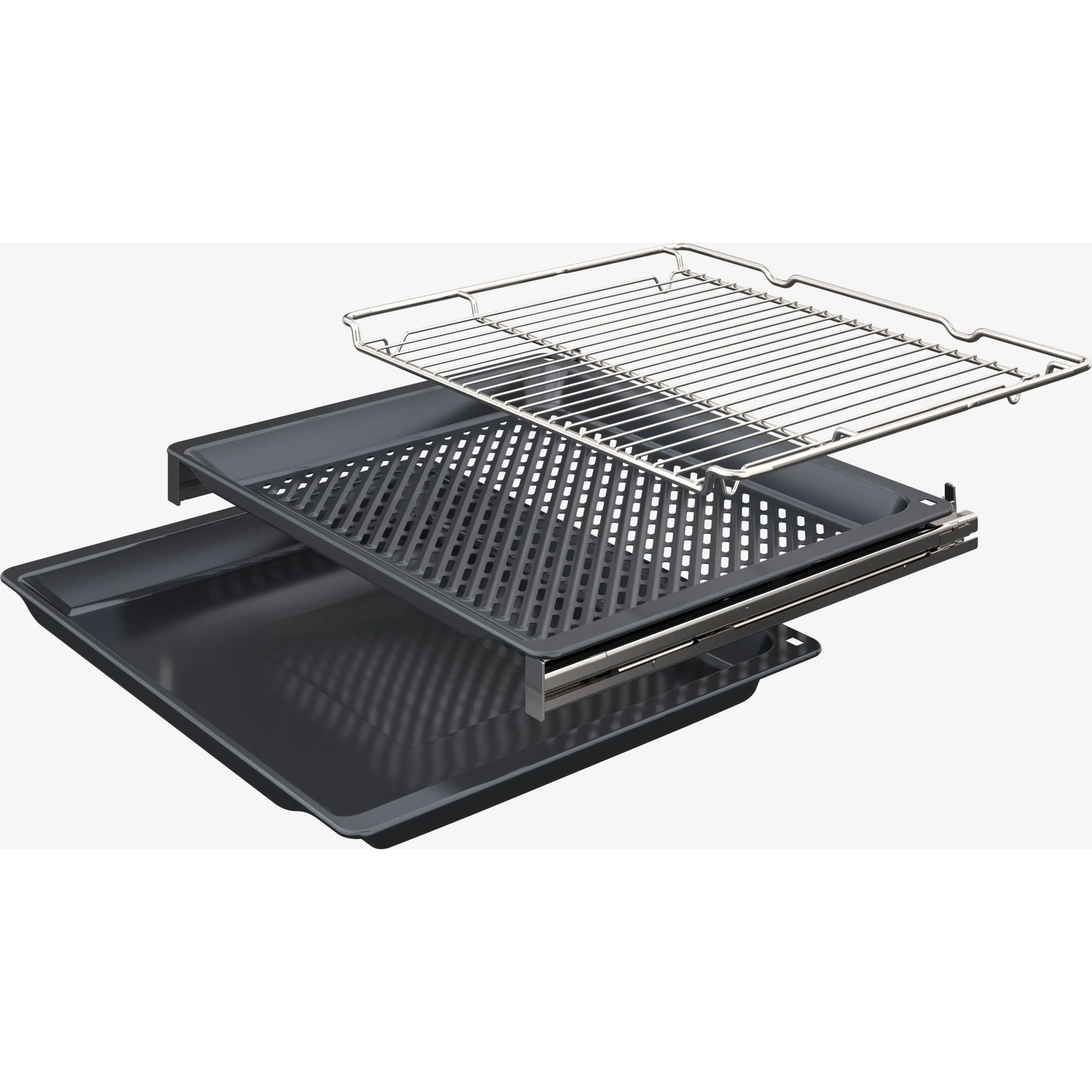 Sistemele de rafturi clasice oferă doar trei poziții pentru șinele telescopice. Bosch oferă și șine telescopice independente de nivel. Șinele pot fi adăugate pe toate nivelurile, inclusiv la nivelul grătarului, făcând prăjirea mai comodă. Șina este ușor de instalat și îndepărtat.