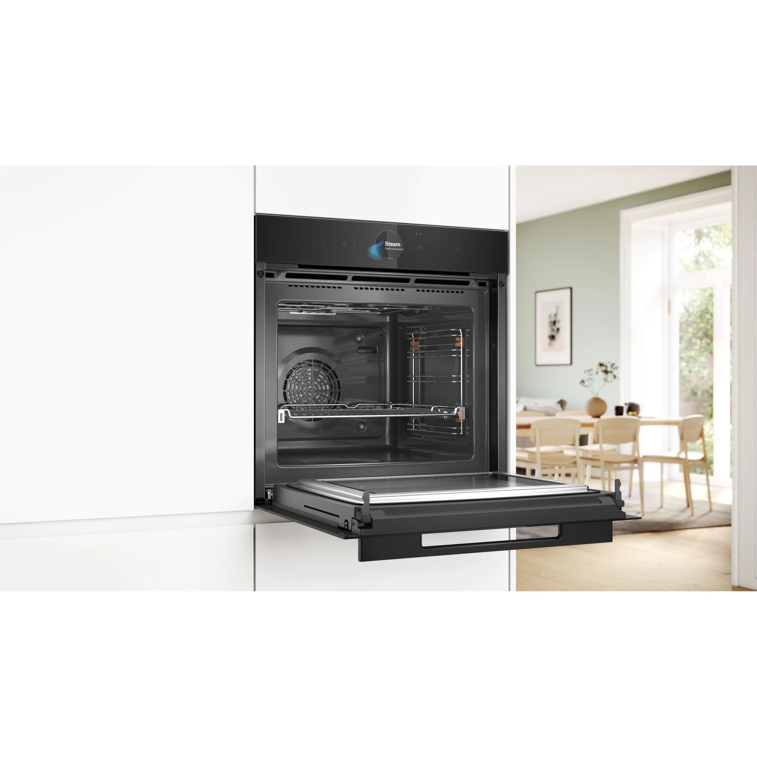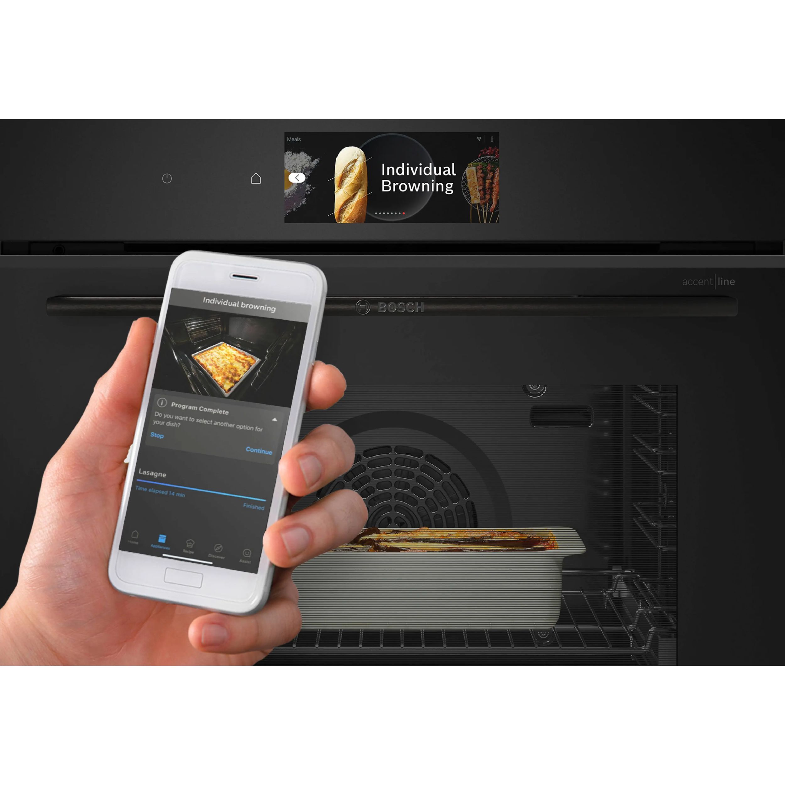 Coacerea preparatelor nu a fost niciodată mai simplă.Selectează un fel de mâncare, cum ar fi „Brioșe", apasă butonul „Start" și cuptorul va prelua controlul imediat.Partea cea mai bună: datorită inteligenței artificiale și a senzorului de coacere care măsoară umiditatea din interiorul cuptorului, poți vedea câte minute au mai rămas până când preparatul tău este gata să fie servit. Pentru a te bucura de funcția PerfectBake Plus, trebuie doar să conectezi cuptorul la contul înregistrat pe Home Connect.