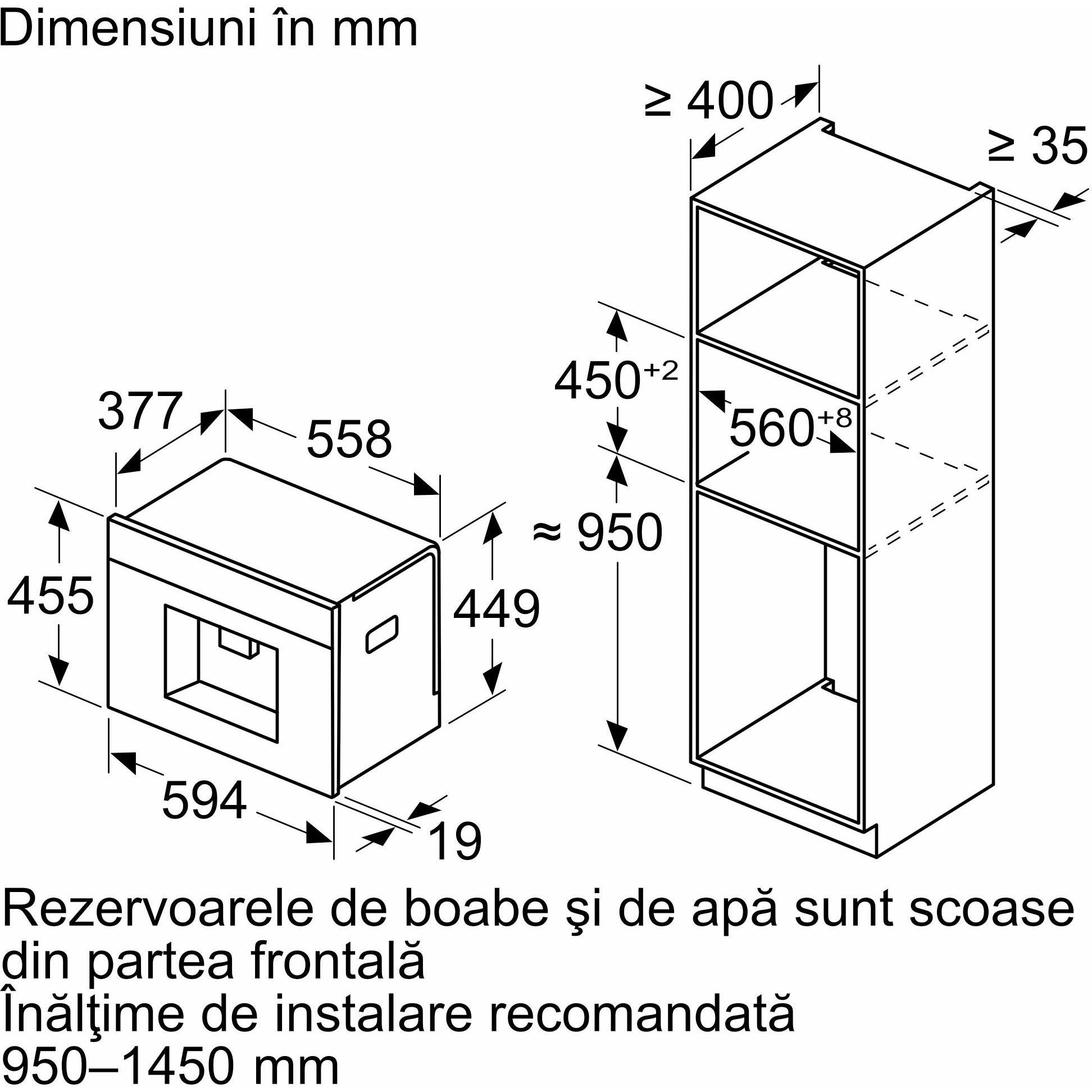 Distribuitor cafea și dispozitiv spumare lapte ajustabile pe înălțime (până la 15cm (max) )