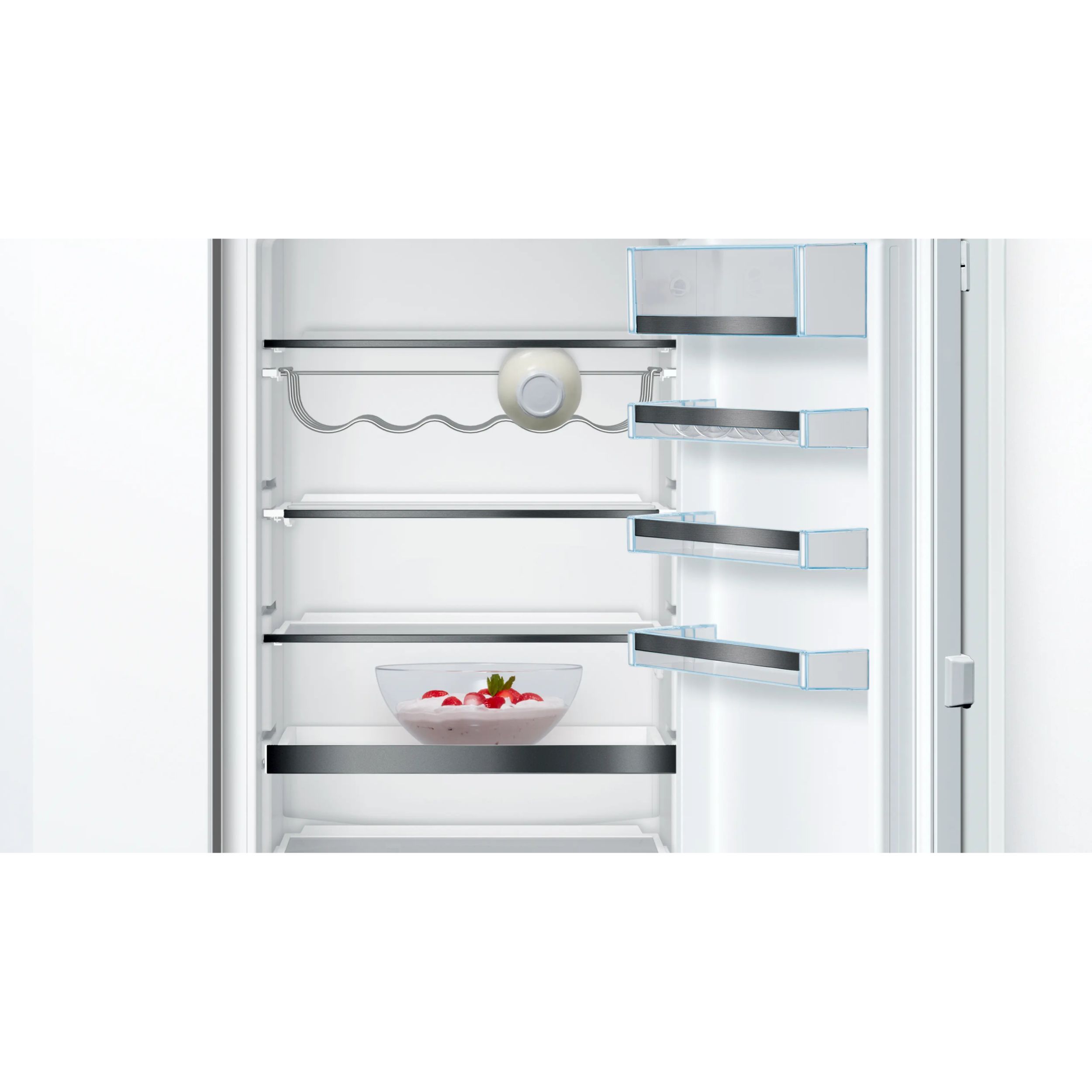 Când frigiderul este plin, este greu să ții evidența legumelor sau a gustărilor ascunse în spate. De aceea, am conceput raftul EasyAccess, special realizat ca tu să poți vedea conținutul frigiderului dintr-o singură privire. Tot ce trebuie să faci este să îl tragi și vei avea acces ușor la toate alimentele. Fabricat din sticlă incasabilă, acest raft ușor de manevrat îți permite să găsești rapid ingredientele potrivite pentru următoarea ta masă.