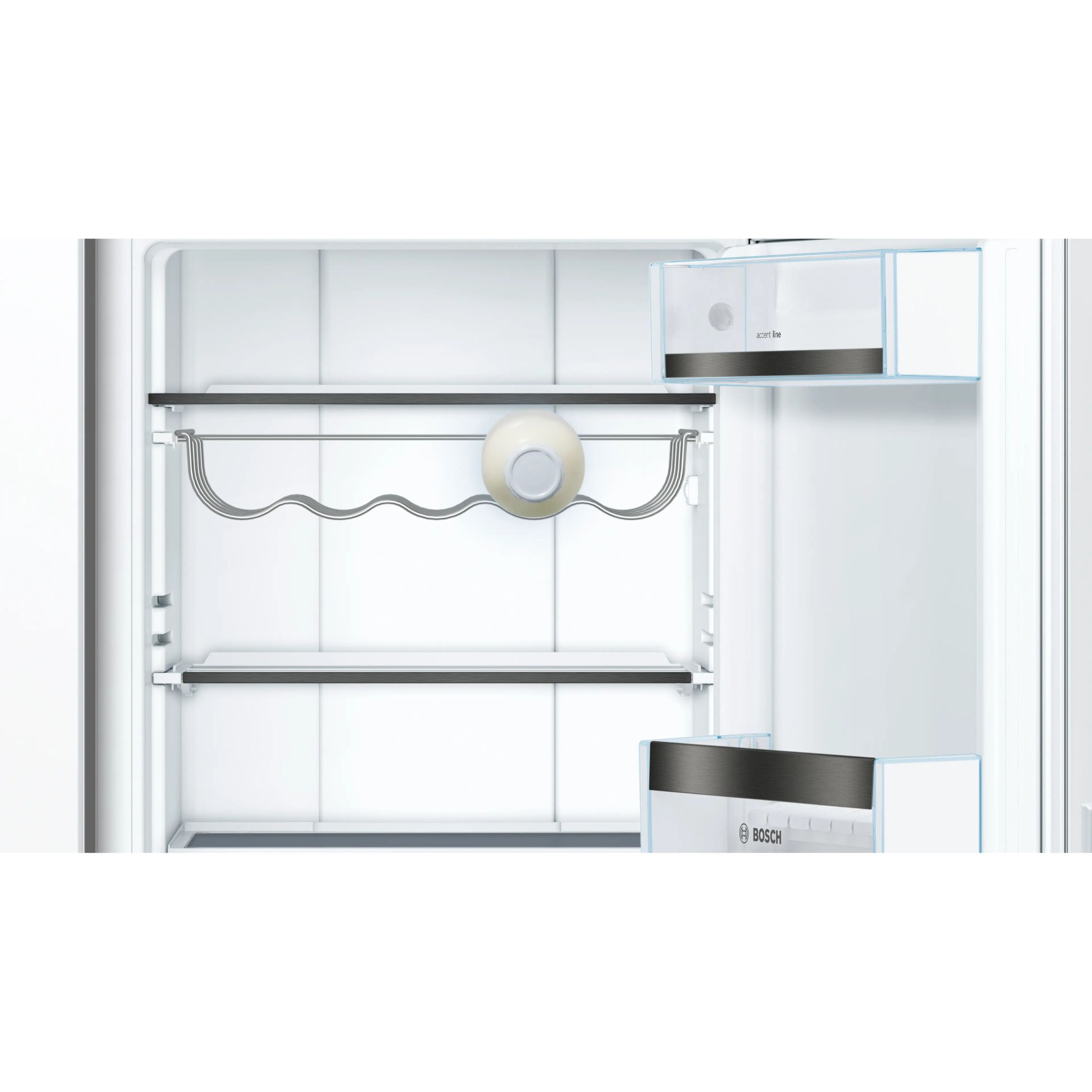 Raftul divizat VarioShelf, din sticlă securizată, poate fi ajustat fără efort. Este ideal pentru articole mai mari, precum sticlele sau bolurile înalte și îți oferă flexibilitate atunci când ai nevoie de mai mult spațiu. O jumătate a raftului glisează ușor sub cealaltă, oferind o alta utilitate .