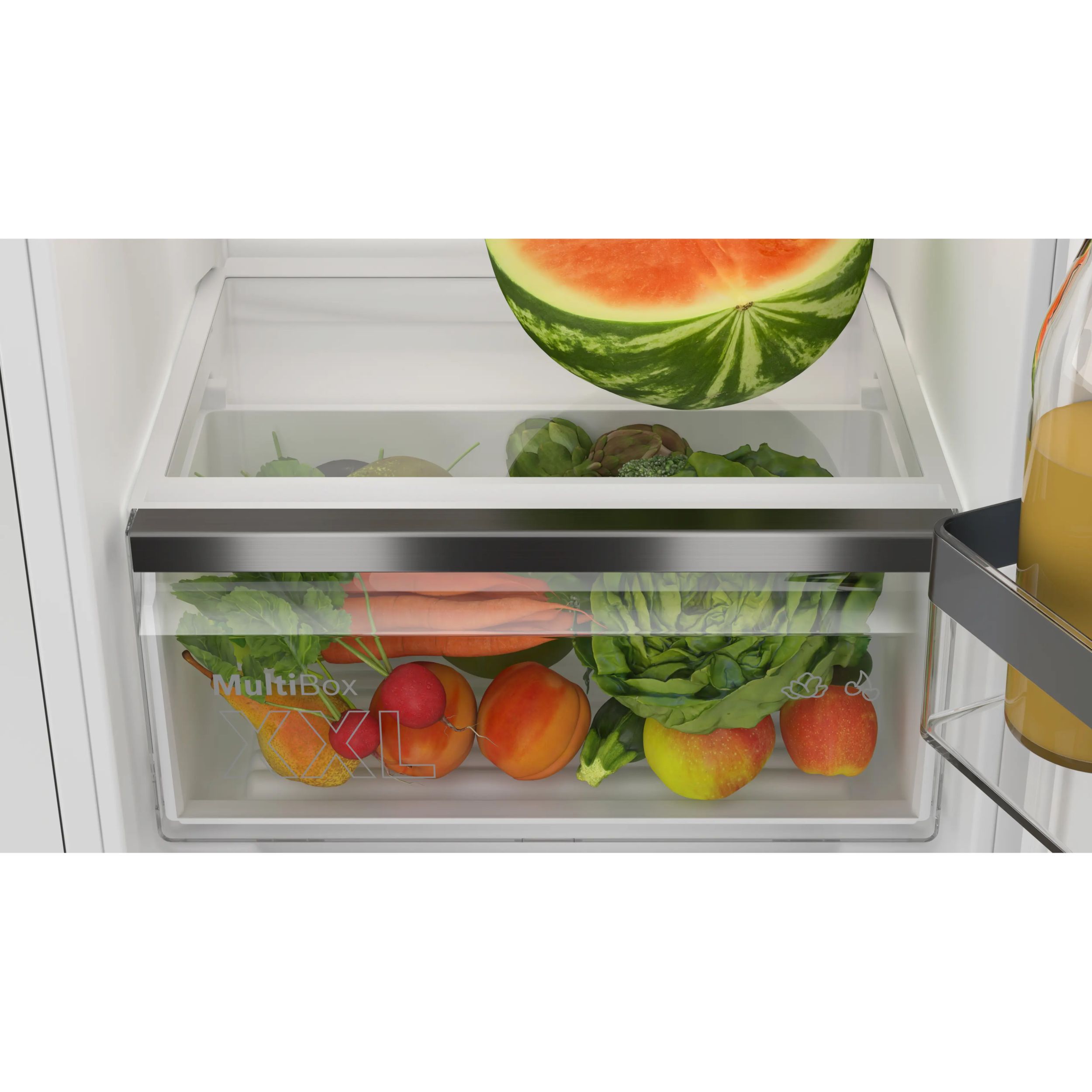 Niciodată nu a fost atât de ușor să depozitezi legumele și fructele! Vrei să faci provizii suplimentare de salată sau să răcești un pepene verde pentru următorul picnic în parc? Sertarul MultiBox XXL oferă un spațiu amplu pentru păstrarea alimentelor proaspete.