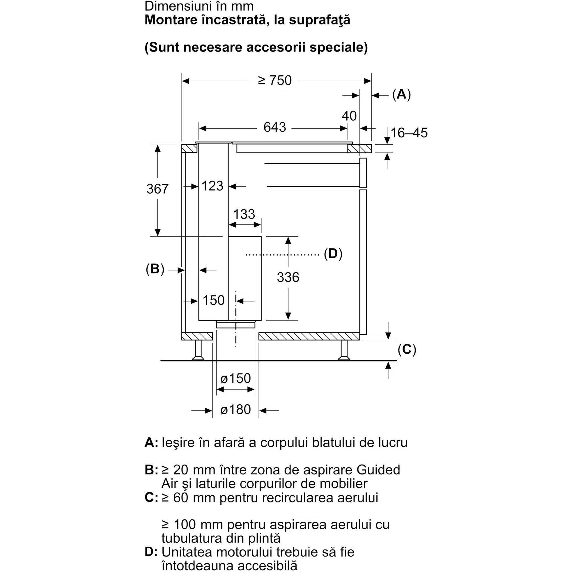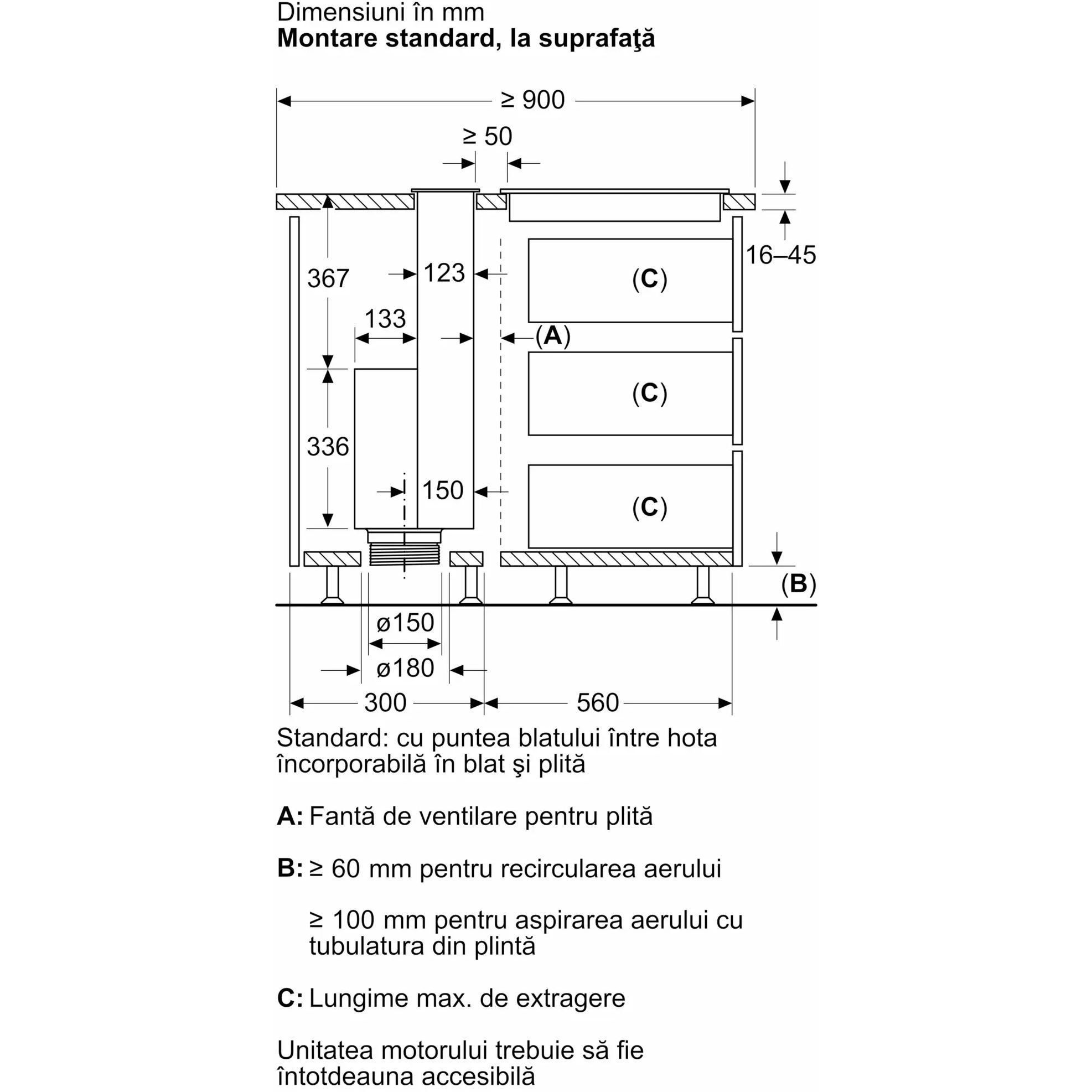 Hotă încorporabilă în blat BOSCH Serie 8 DDW88MM66, accent line, 80cm, Sticlă transparentă, Negru