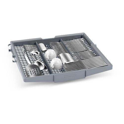 Datorită sertarului de tacâmuri VarioDrawer, cel de-al treilea nivel de încărcare, mașinile de spălat vase Bosch sunt și mai confortabile. Acesta este locul ideal pentru tacâmuri și ustensile mici de bucătărie, de exemplu polonice și teluri. Acesta îți oferă mai mare flexibilitate la încărcarea mașinii tale de spălat vase și creează mai mult spațiu în interiorul compartimentului de spălare. Coșul pentru tacâmuri din coșul inferior poate fi înlocuit cu VarioDrawer pentru crea o capacitate de până la 14 seturi de veselă standard în cazul mașinilor de spălat vase de 60cm, și de până la 10 seturi de veselă standard pentru mașinile de 45cm.