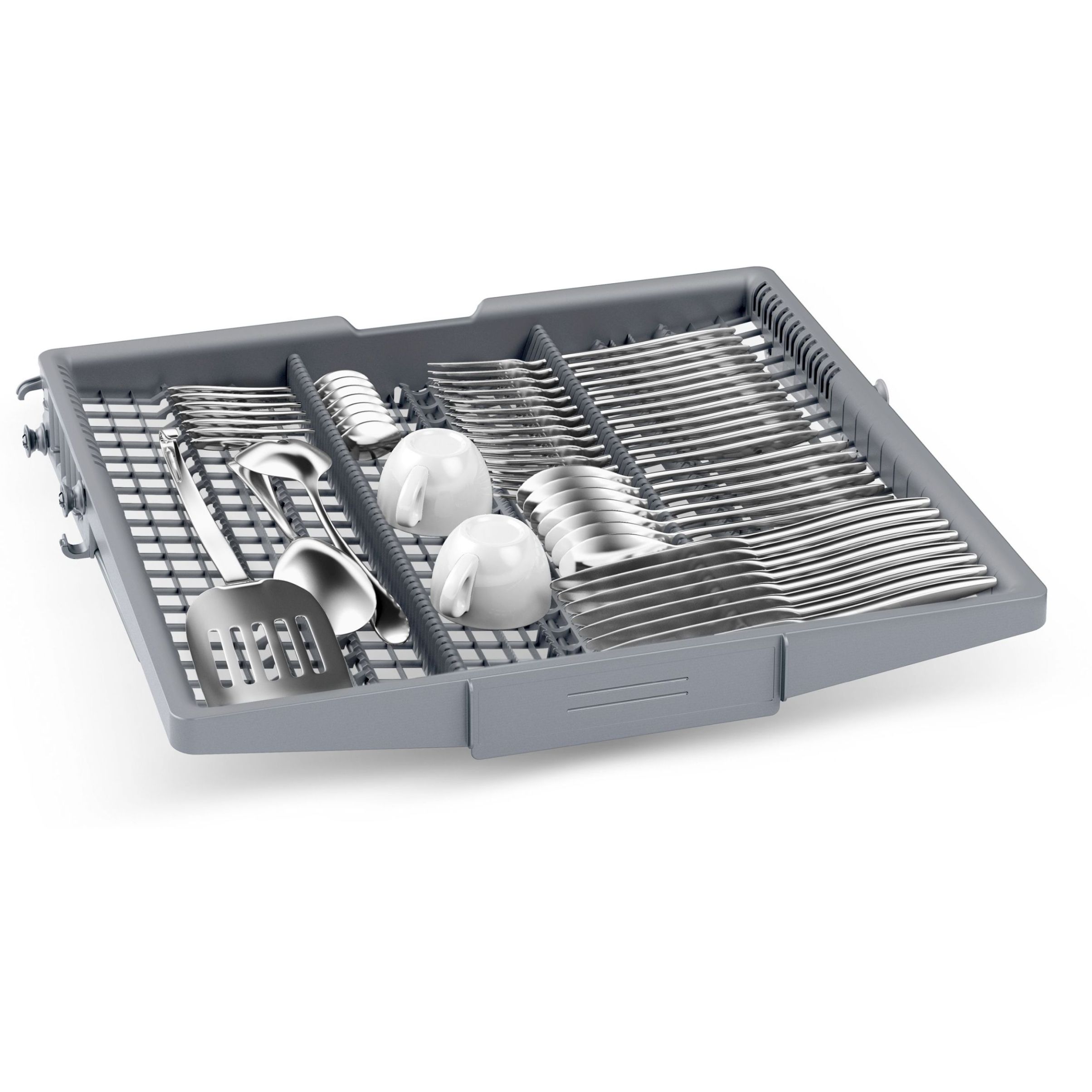 Datorită sertarului de tacâmuri VarioDrawer, cel de-al treilea nivel de încărcare, mașinile de spălat vase Bosch sunt și mai confortabile. Acesta este locul ideal pentru tacâmuri și ustensile mici de bucătărie, de exemplu polonice și teluri. Acesta îți oferă mai mare flexibilitate la încărcarea mașinii tale de spălat vase și creează mai mult spațiu în interiorul compartimentului de spălare. Coșul pentru tacâmuri din coșul inferior poate fi înlocuit cu VarioDrawer pentru crea o capacitate de până la 14 seturi de veselă standard în cazul mașinilor de spălat vase de 60 cm, și de până la 10 seturi de veselă standard pentru mașinile de 45 cm.