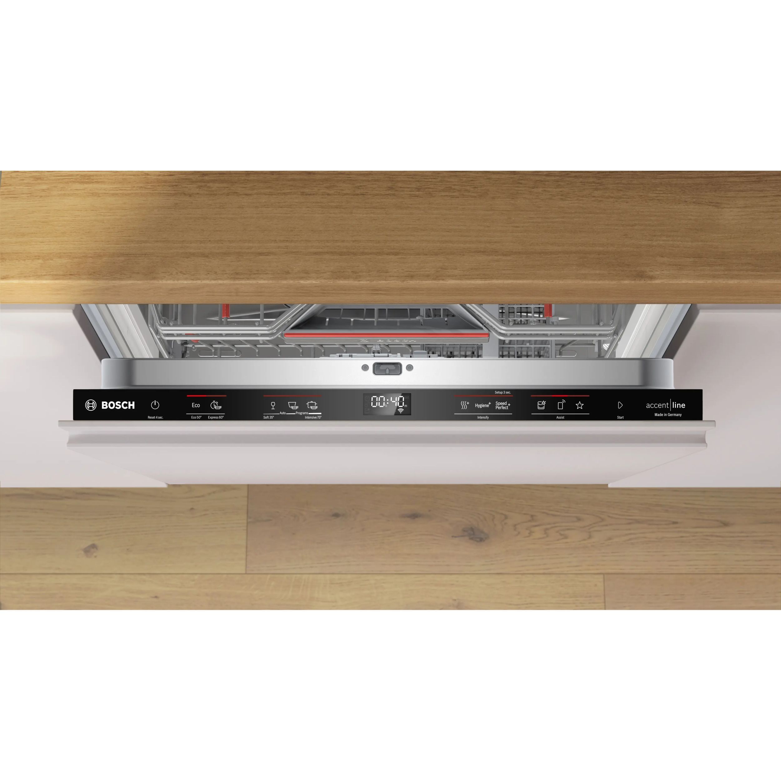 Mașină de spălat vase complet încorporabilă BOSCH Serie 6 SMT6EB802E, accent line, 60cm, VarioHinge