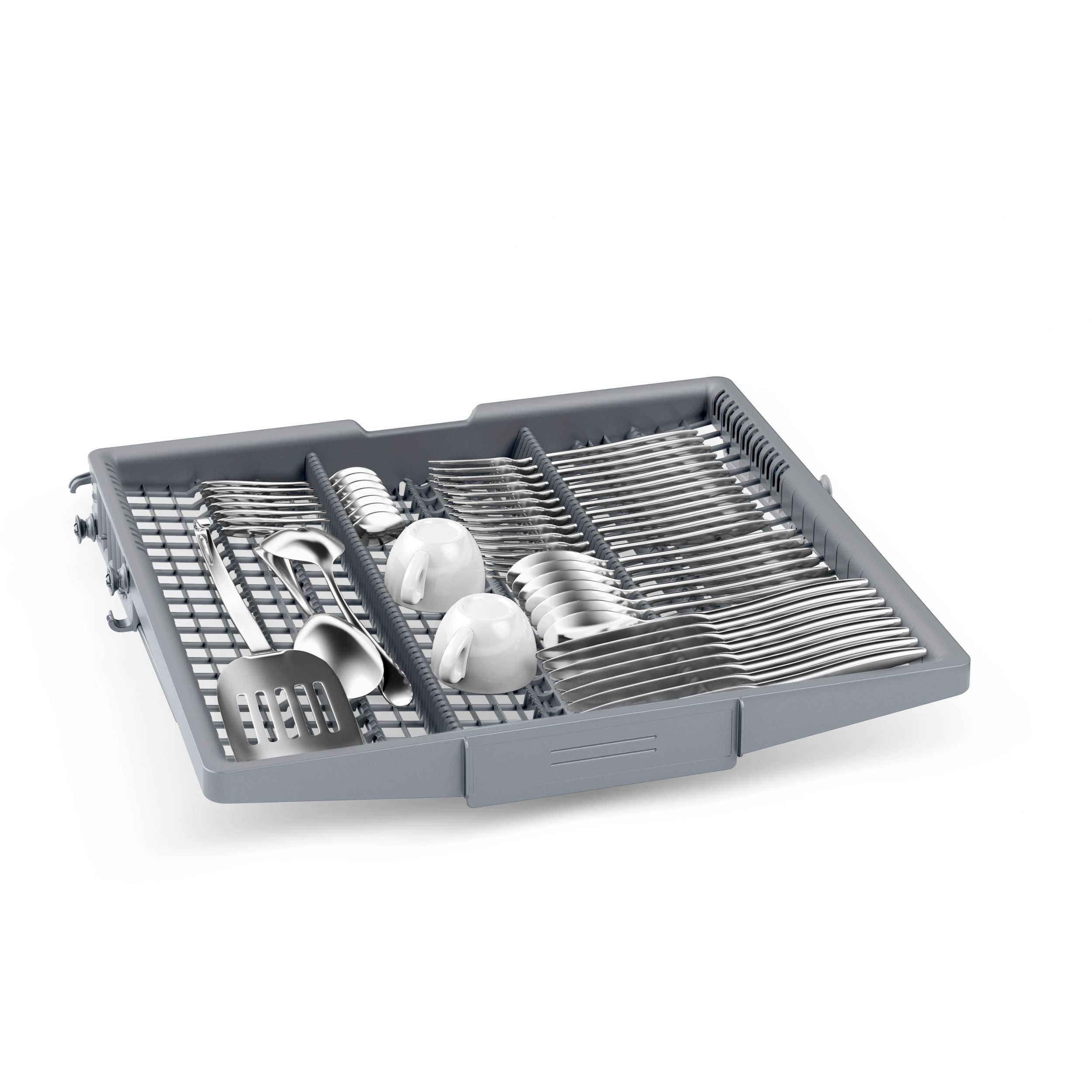 Datorită sertarului de tacâmuri VarioDrawer, cel de-al treilea nivel de încărcare, mașinile de spălat vase Bosch sunt și mai confortabile. Acesta este locul ideal pentru tacâmuri și ustensile mici de bucătărie, de exemplu polonice și teluri. Acesta îți oferă mai mare flexibilitate la încărcarea mașinii tale de spălat vase și creează mai mult spațiu în interiorul compartimentului de spălare. Coșul pentru tacâmuri din coșul inferior poate fi înlocuit cu VarioDrawer pentru crea o capacitate de până la 14 seturi de veselă standard în cazul mașinilor de spălat vase de 60cm, și de până la 10 seturi de veselă standard pentru mașinile de 45cm.