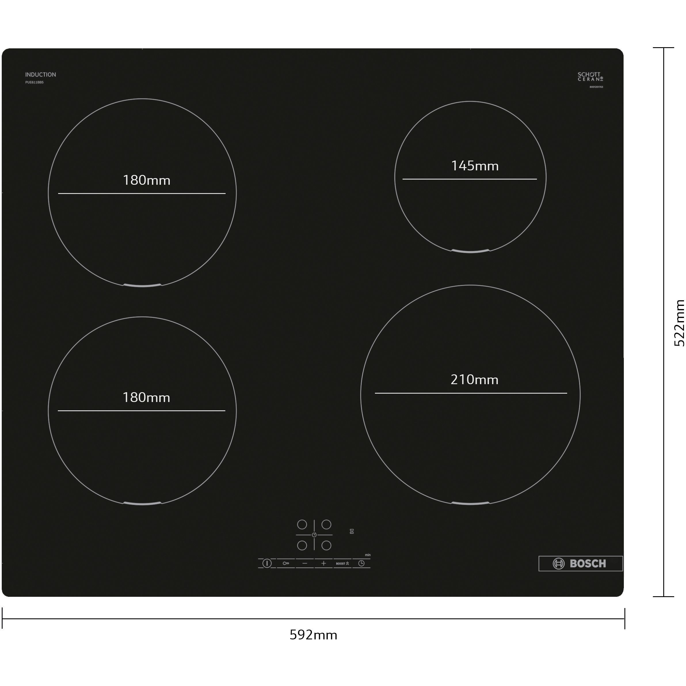 60 cm, suprafață pentru 4 vase de gătit
