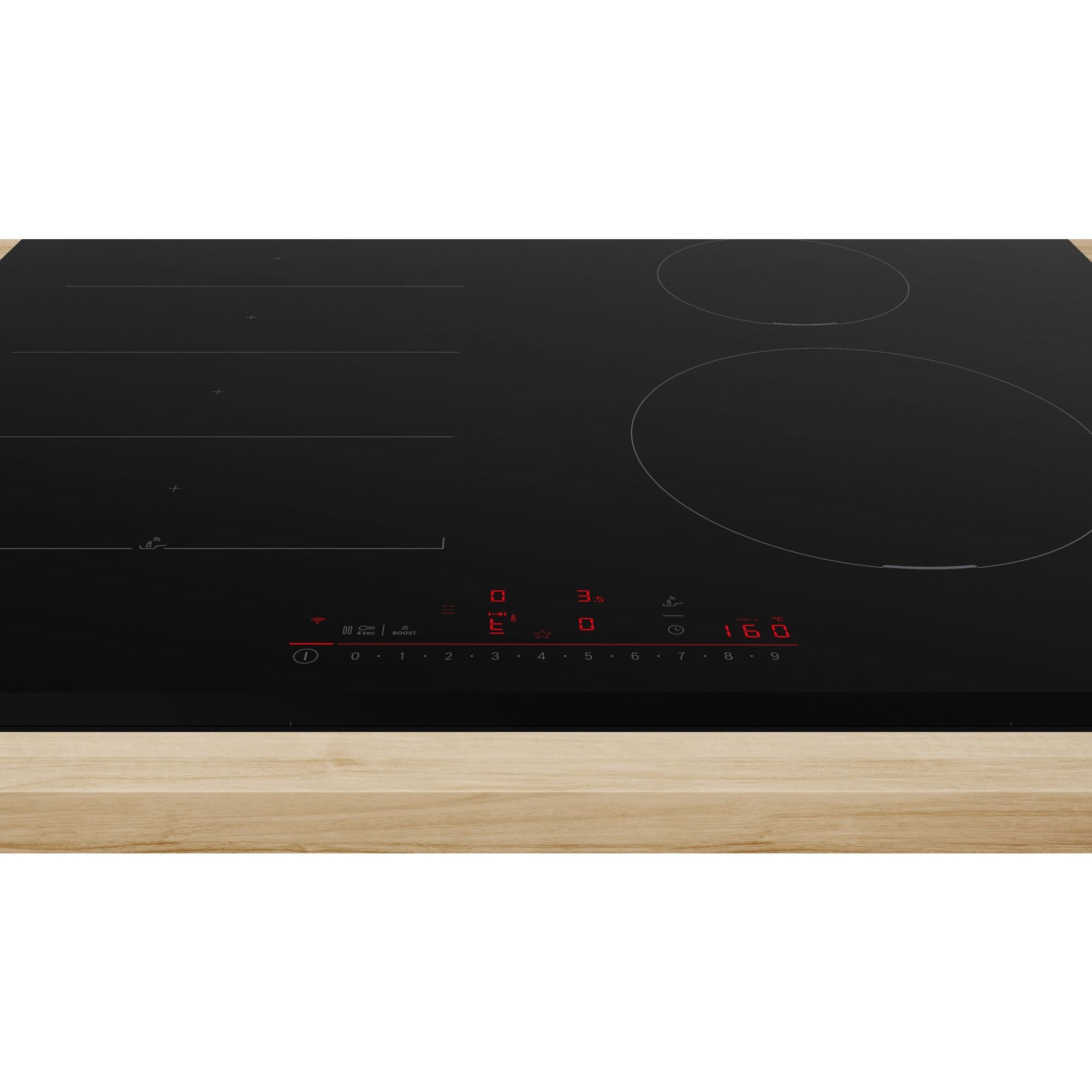 Funcţie PowerBoost pentru toate zonele de gătit: apa fierbe mai repede, datorită puterii mai mari cu până la 50% față de treapta maximă.
