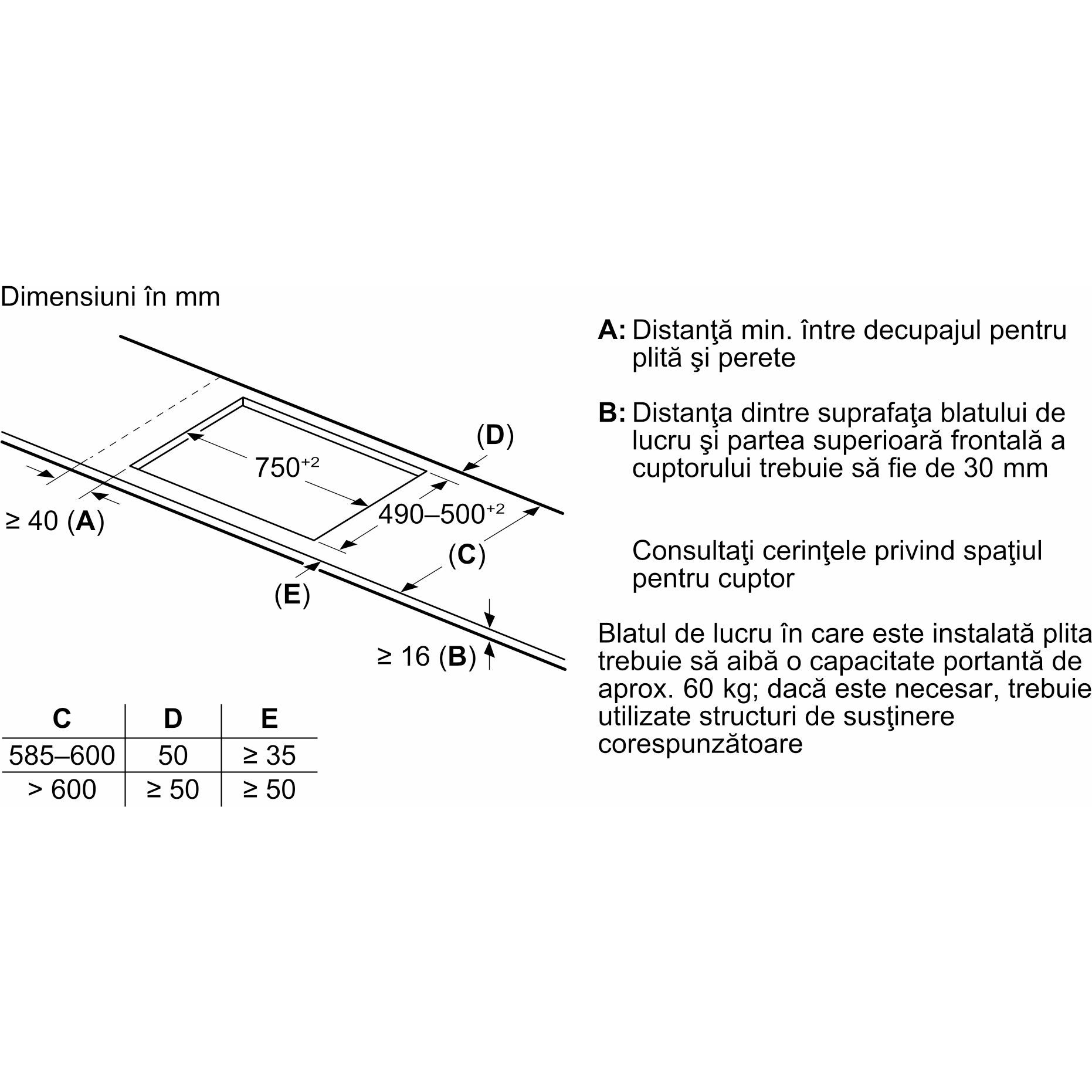Dimensiuni nișă (ȊxLxA): 51 x 750 x (490 - 500) mm