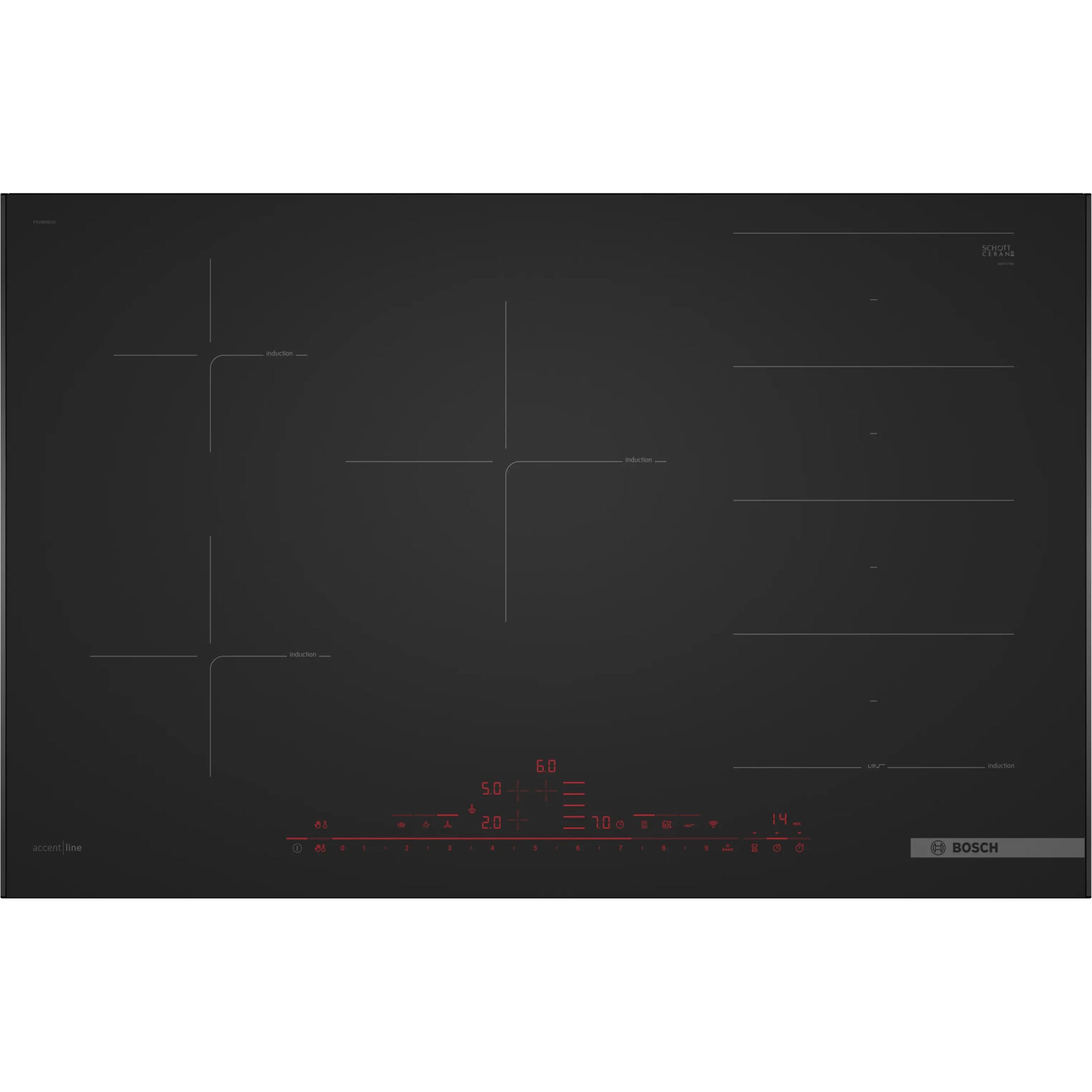 - Zone de gătit delimitate în design exclusivist Bosch AccentLine, corner printed brand logo : design minimalist cu zone de gătit delimitate printr-o culoare nchisă.