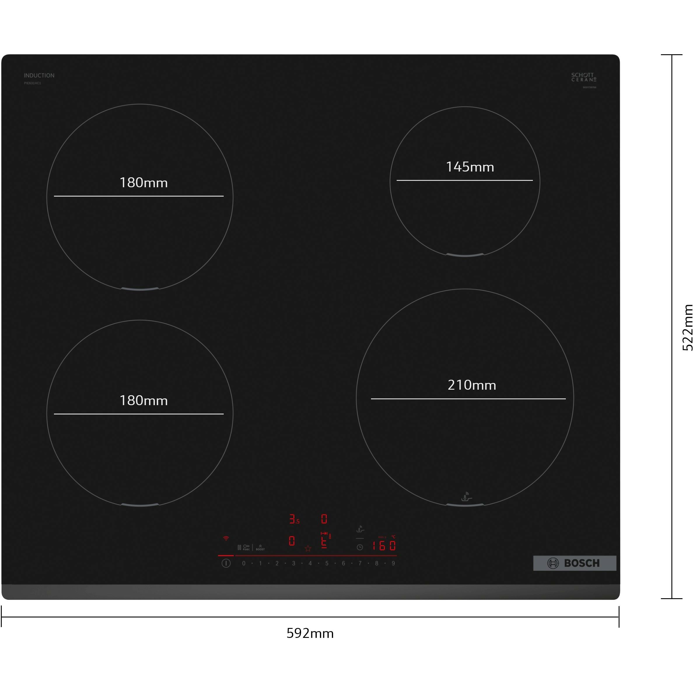 • Buton Preferințe: personalizează-ți plita cu Home Connect.