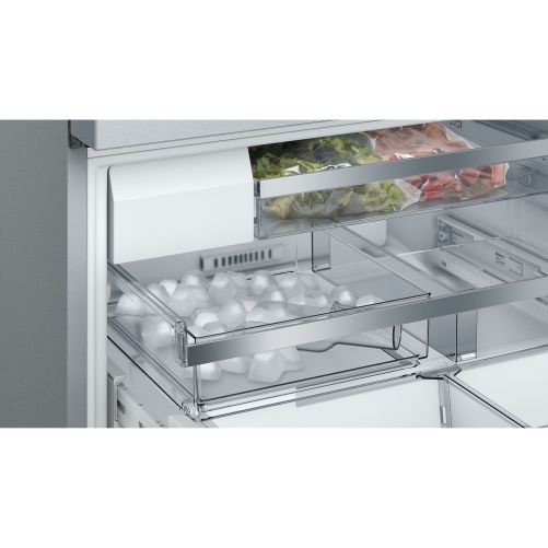 Cu un design spațios, combina frigorifică Multidoor oferă spațiu generos pentru articole voluminoase precum tăvi de copt, pepeni sau cumpărături în cantități mari. Sertarele spațioase păstrează ordonat și perfect răcite produsele proaspete, peștele și carnea. Interiorul facilitează organizarea, vizualizarea și accesul rapid la alimente oferindu-ți flexibilitate totală dintr-o singură privire.