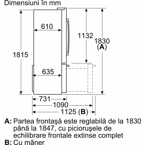 Pentru atingerea nivelului de consum declarat, trebuie folosite distanţierele livrate. Drept rezultat, adâncimea aparatului se va mări cu 3,5 cm. Folosirea fără distanţiere nu afectează funcţionarea aparatului, cu excepţia unei uşoare creşteri a consumului de energie.