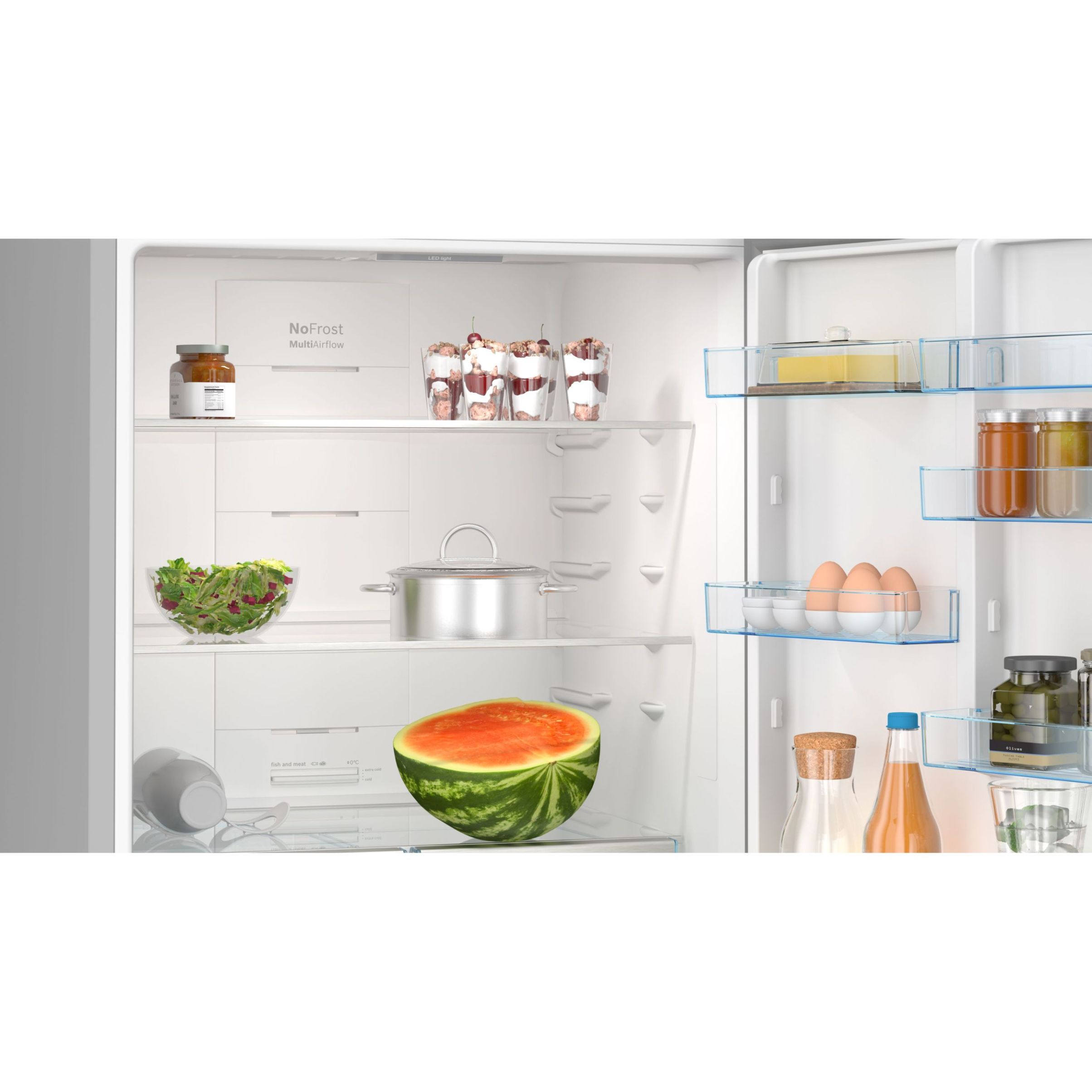 Cu Total No Frost, congelatorul tău nu va mai avea nevoie de dezghețare. Aceasta extrage umiditatea și menține aerul uscat, prevenind formarea gheții pe pereți și alimente. Același principiu se aplică și zonei frigiderului. Spune adio picăturilor de apă și acumulării de gheață pe peretele din spate, pentru un aspect igienic. Mai puțin efort de curățare și dezghețare, mai multă eficiență energetică.