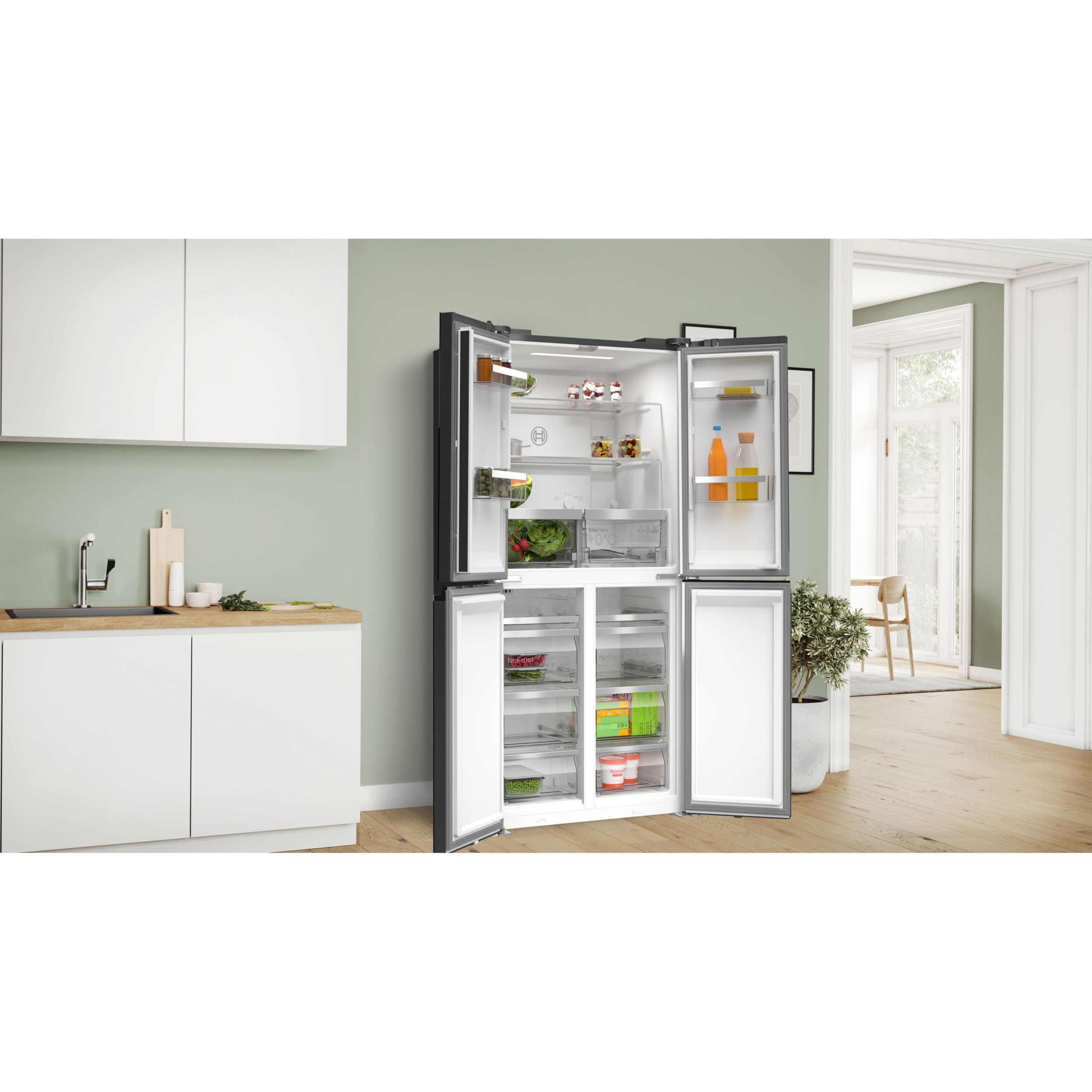 Combină frigorifică MultiDoor: pătrunde într-o lume XXL a prospețimii cu VitaFresh <0°C> XXL. Spune la revedere durerilor de cap generate de dezghețarea congelatorului și bucura-te de alimente pastrate reci și proaspete.