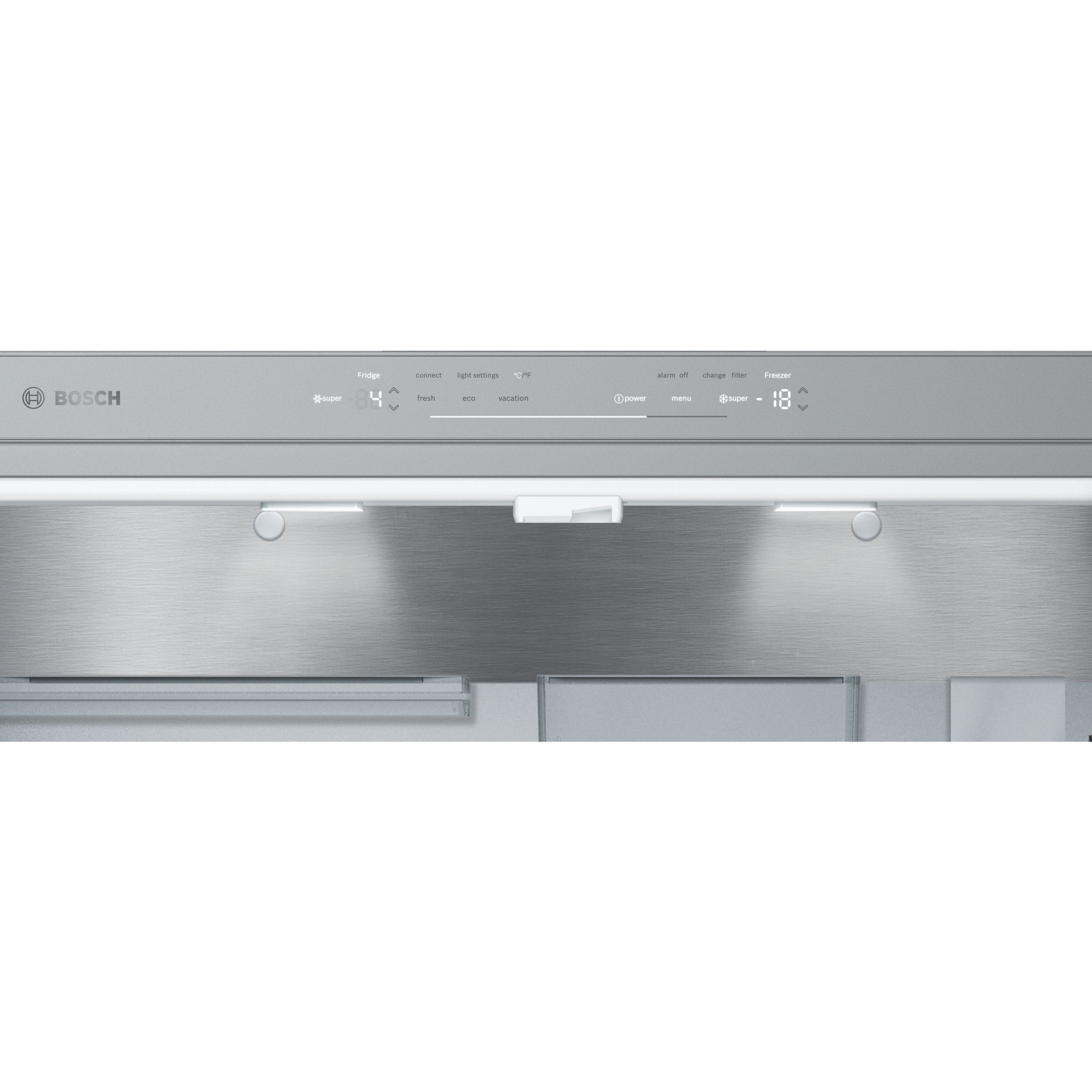 Cu aplicația Home Connect, poți controla frigiderul Bosch direct de pe smartphone sau tabletă — de oriunde te-ai afla. Monitorizezi și ajustezi temperatura, iluminarea și alte setări în timp real. Fie că ești în vacanță sau la birou, primești notificări dacă ușa frigiderului rămâne deschisă sau dacă vrei să activezi modul Vacanță. În plus, echipa de service Bosch poate diagnostica de la distanță eventualele probleme ale aparatului. Home Connect îți oferă confort, control și liniște deplină.