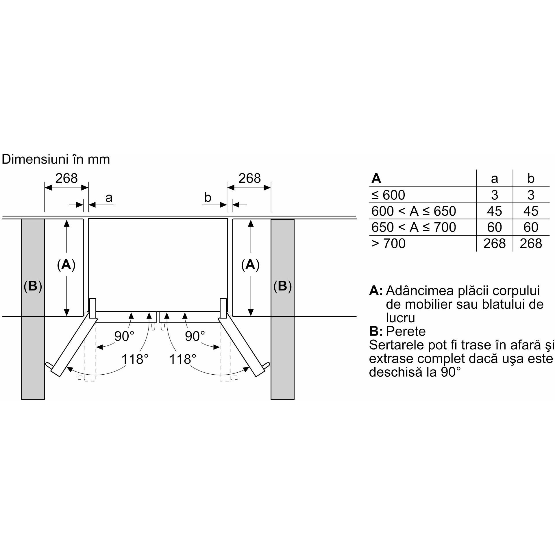 Pentru atingerea nivelului de consum declarat, trebuie folosite distanţierele livrate. Drept rezultat, adâncimea aparatului se va mări cu 3,5 cm. Folosirea fără distanţiere nu afectează funcţionarea aparatului, cu excepţia unei uşoare creşteri a consumului de energie.