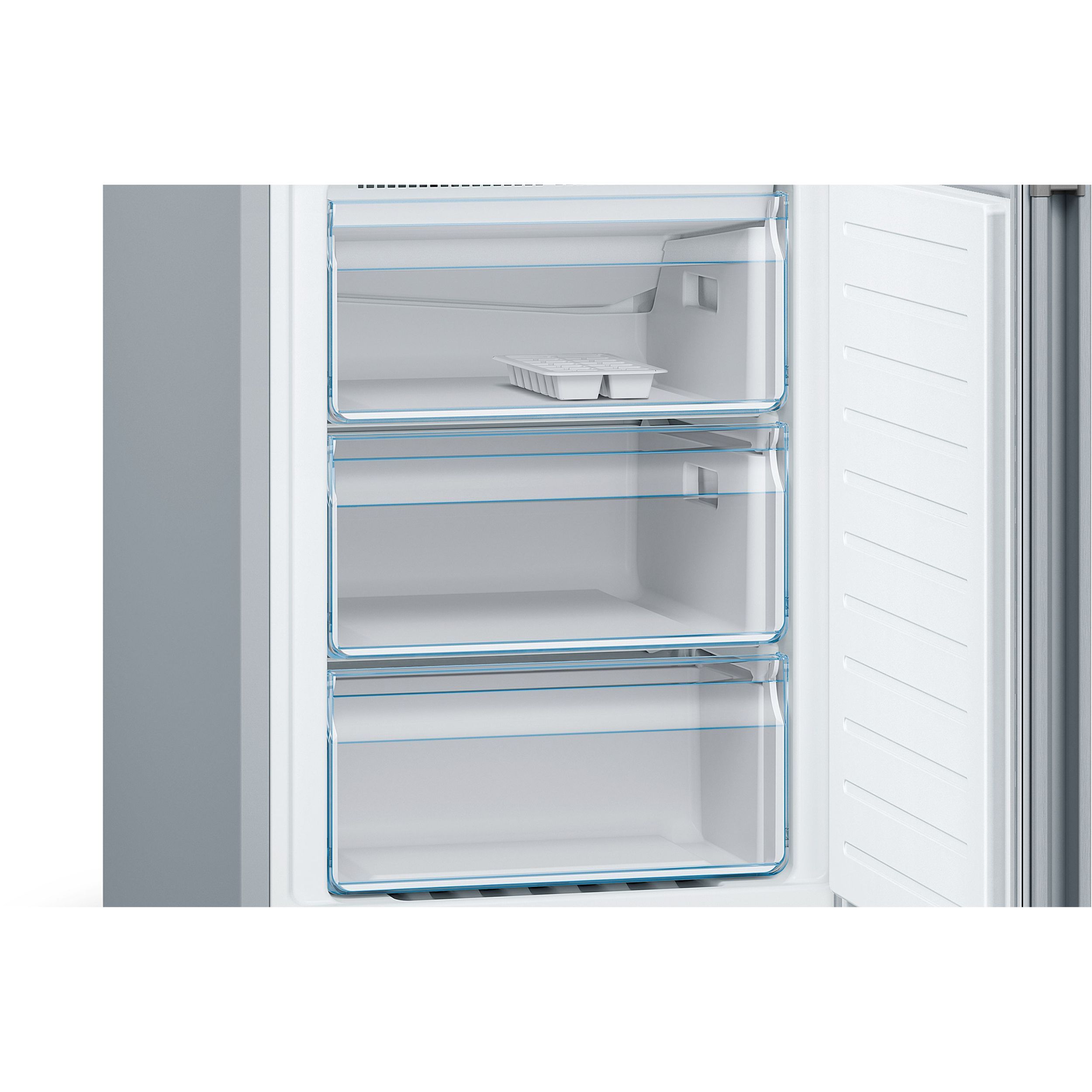 Cu Total No Frost, congelatorul tău nu va mai avea nevoie de dezghețare. Aceasta extrage umiditatea și menține aerul uscat, prevenind formarea gheții pe pereți și alimente. Același principiu se aplică și zonei frigiderului. Spune adio picăturilor de apă și acumulării de gheață pe peretele din spate, pentru un aspect igienic. Mai puțin efort de curățare și dezghețare, mai multă eficiență energetică.