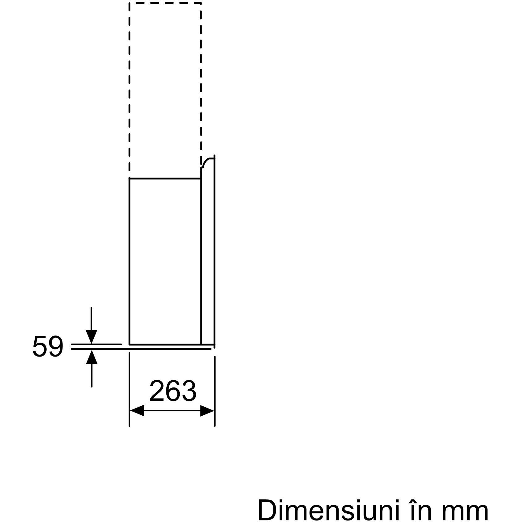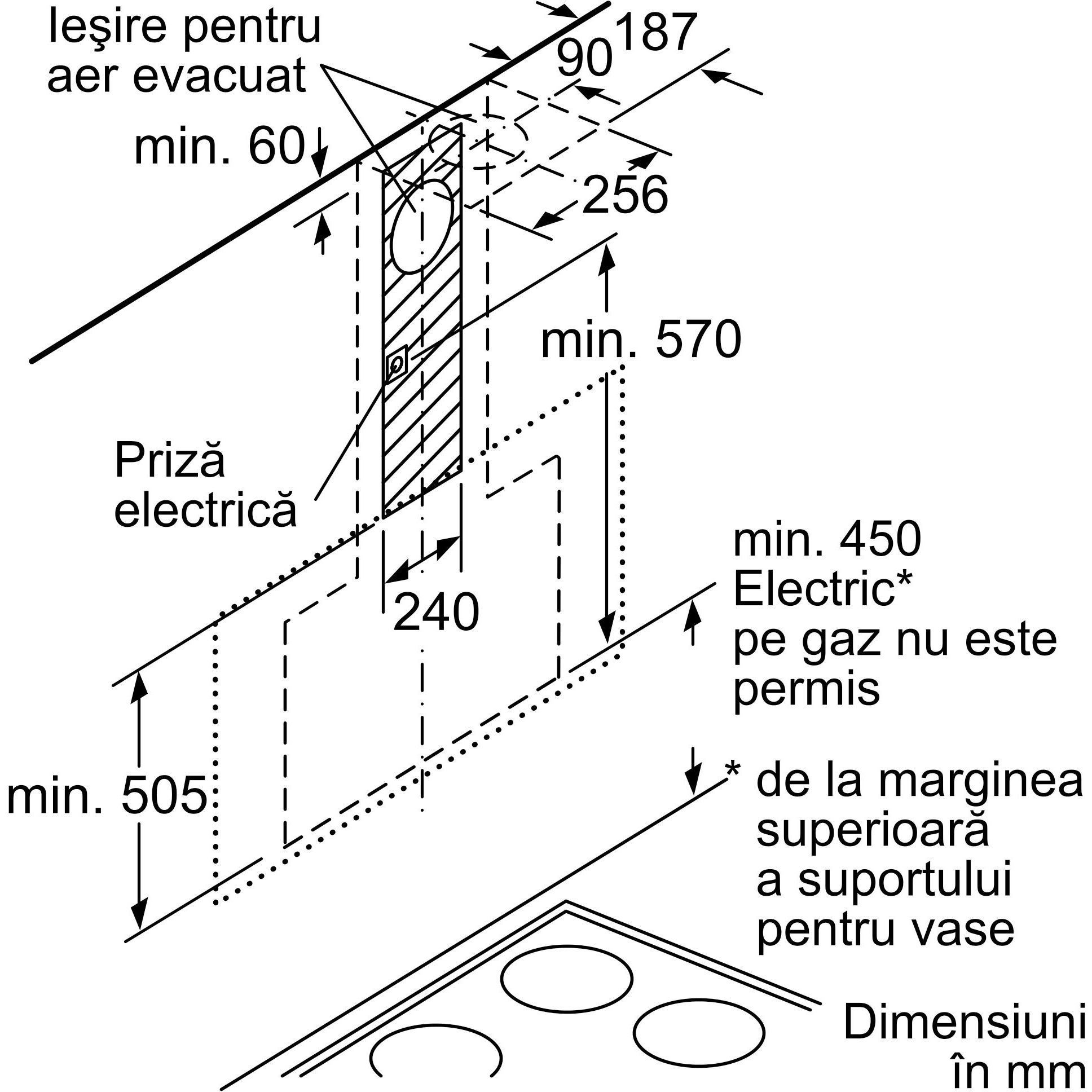 Dimensiuni pentru montaj în mod recirculare, fără horn (ÎxLxA): 550 mm x 890 x 263 mm
