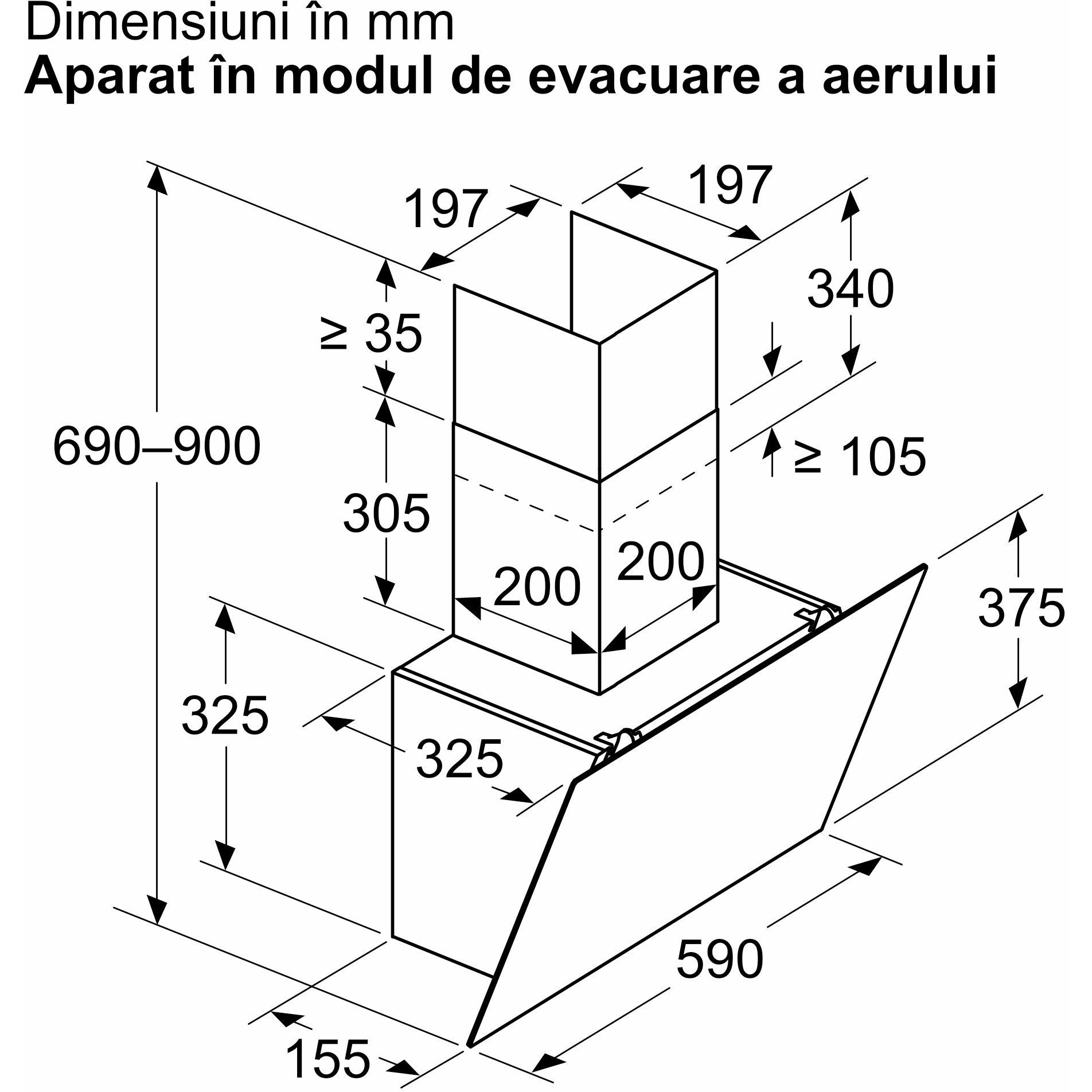 Dimensiuni pentru montaj ȋn mod evacuare (ÎxLxA): 690-900 x 590 x 325 mm