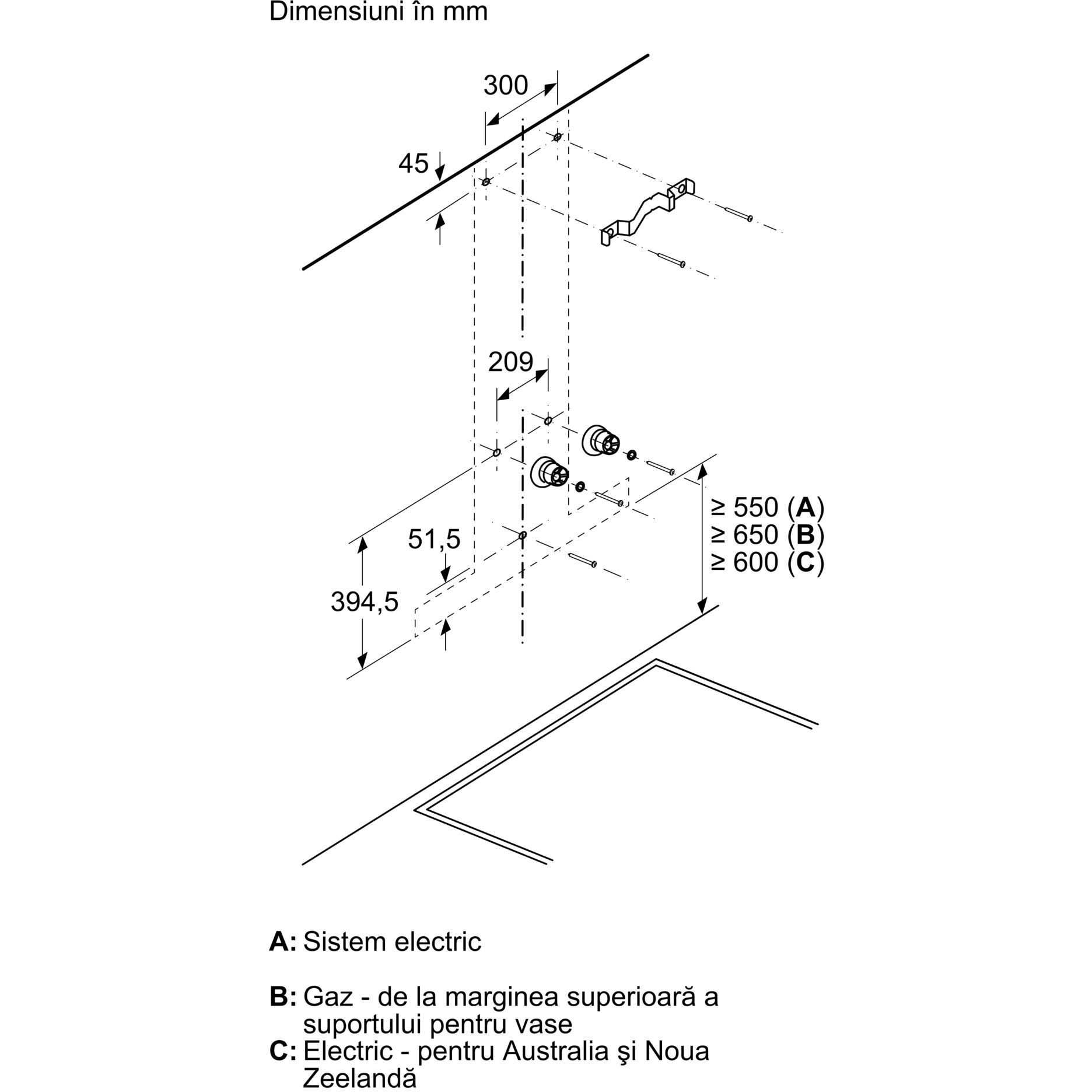 Vă rugăm sa consultați dimensiunile specificate în schița de instalare