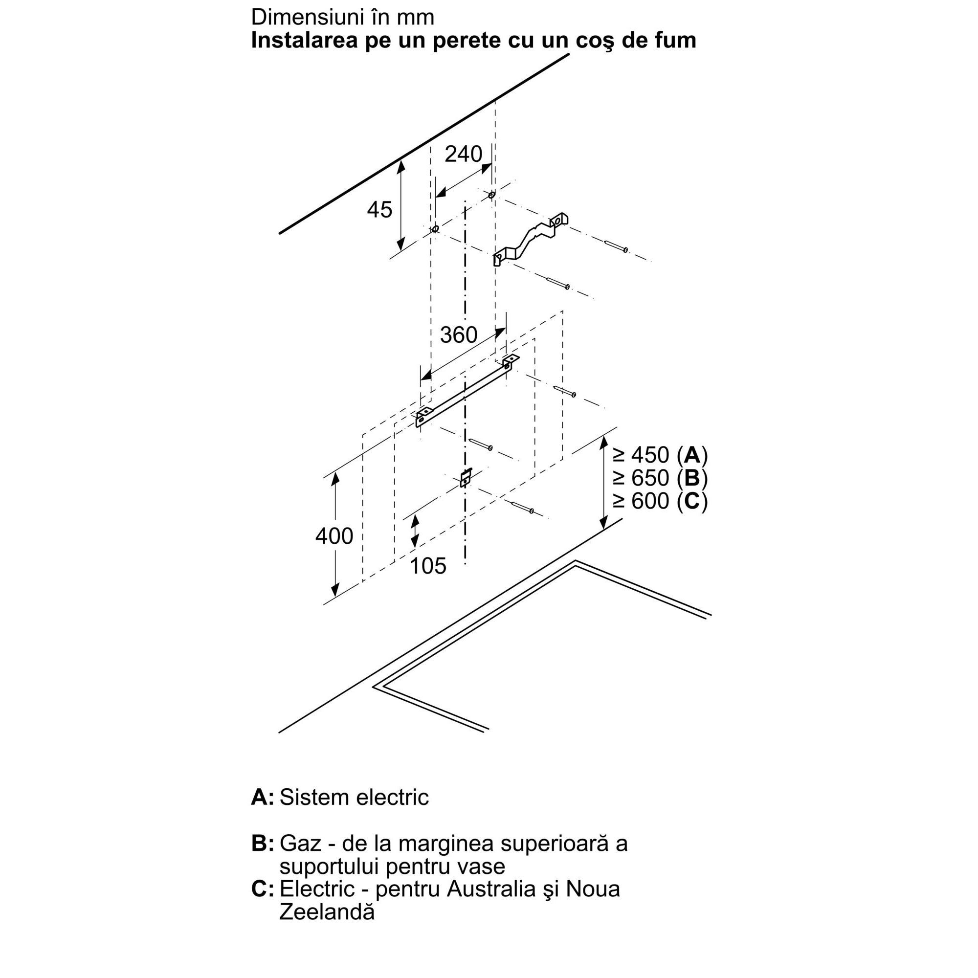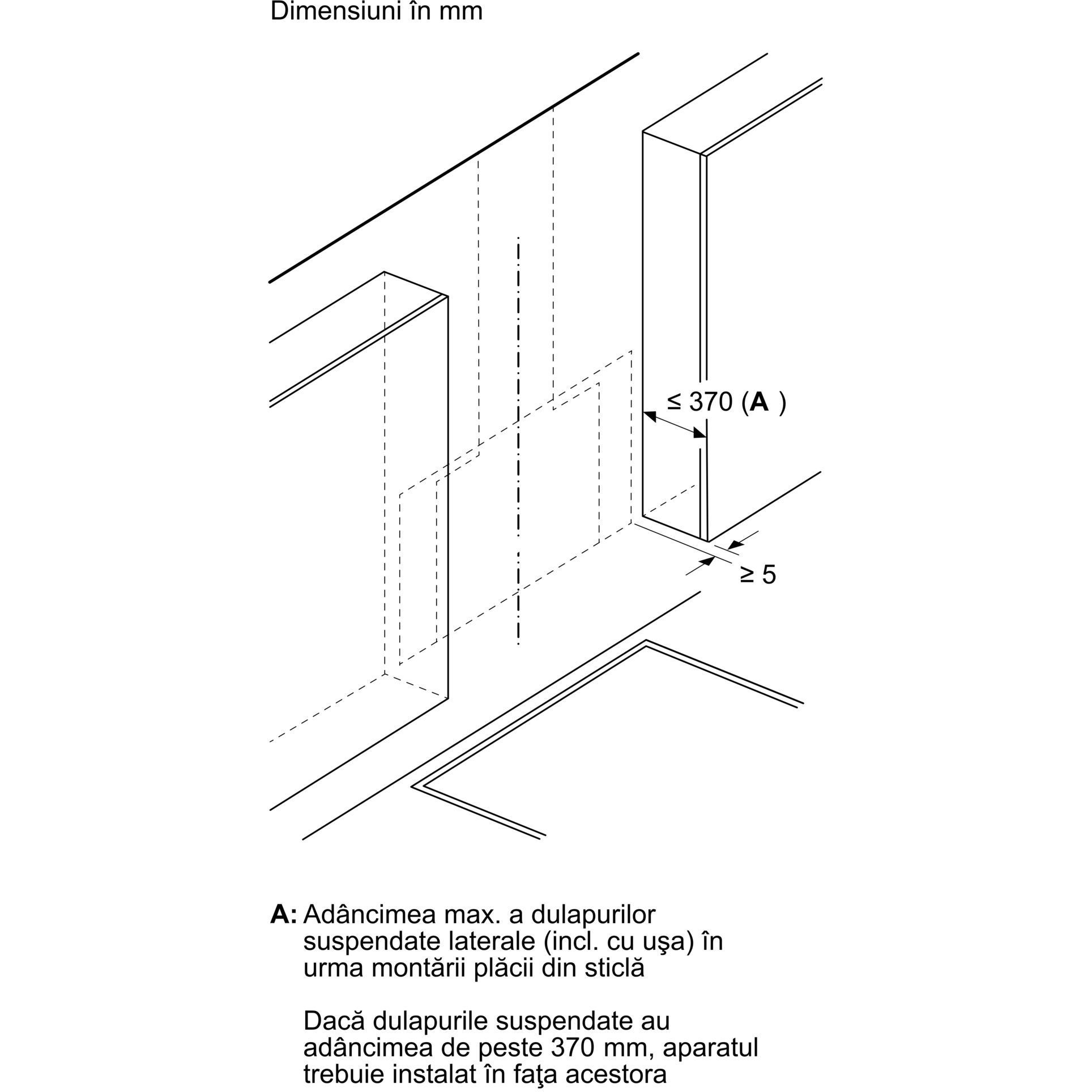 Dimensiuni pentru montaj ȋn mod recirculare (ÎxLxA): 892-1185 x 790 x 433 mm