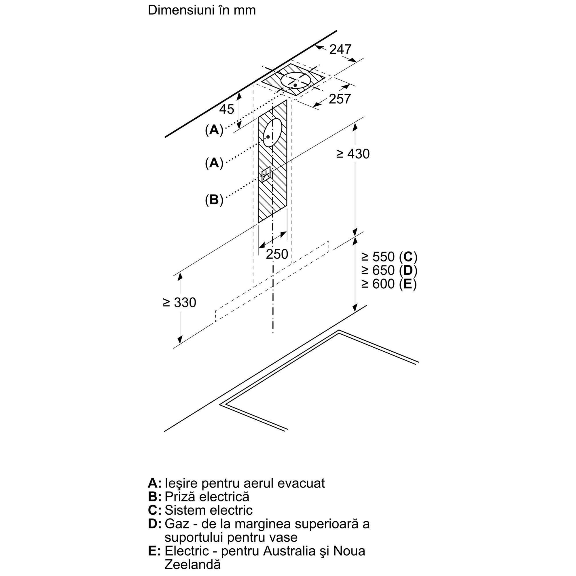 Dimensiuni pentru montaj ȋn mod evacuare (ÎxLxA): 635-965 x 600 x 500 mm