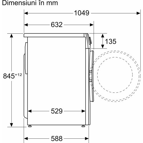 Adâncimea aparatului cu ușă deschisă: 104.9 cm