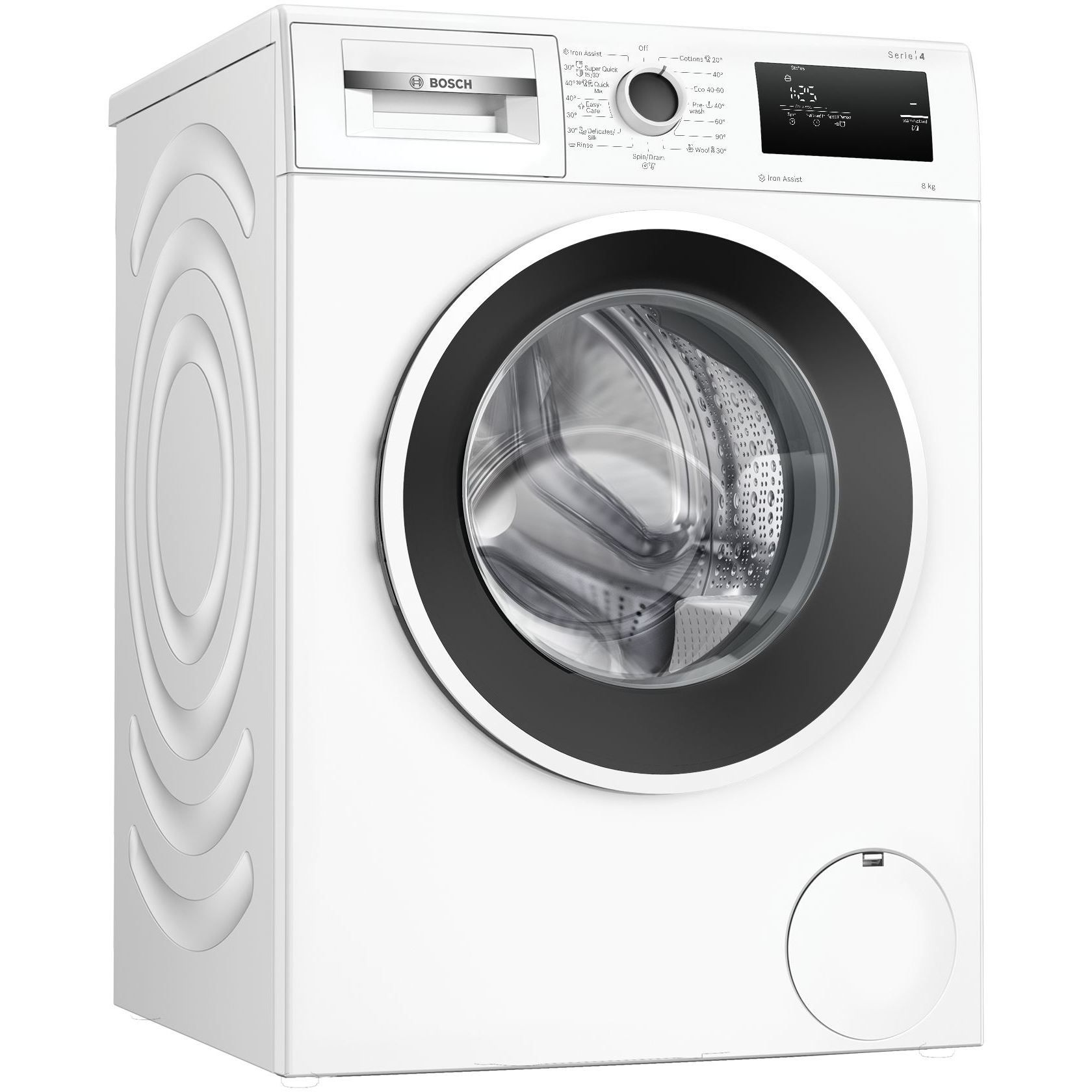 - Programe speciale: Iron Assist: program cu aburi pentru reducerea cutele hainelor uscate, Evacuare/Centrifugare, Rapid/Mix, Clătire, Super rapid 30'/15',