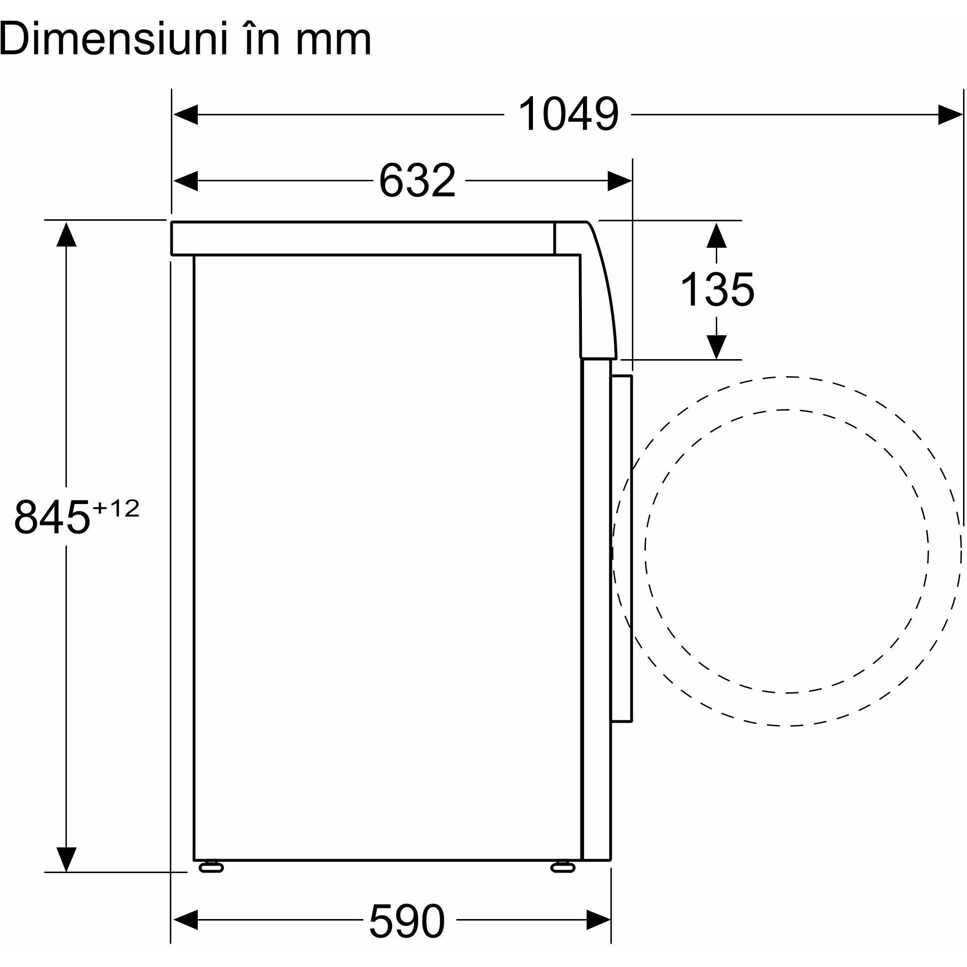 - Adâncimea aparatului cu ușa deschisă: 1049 mm