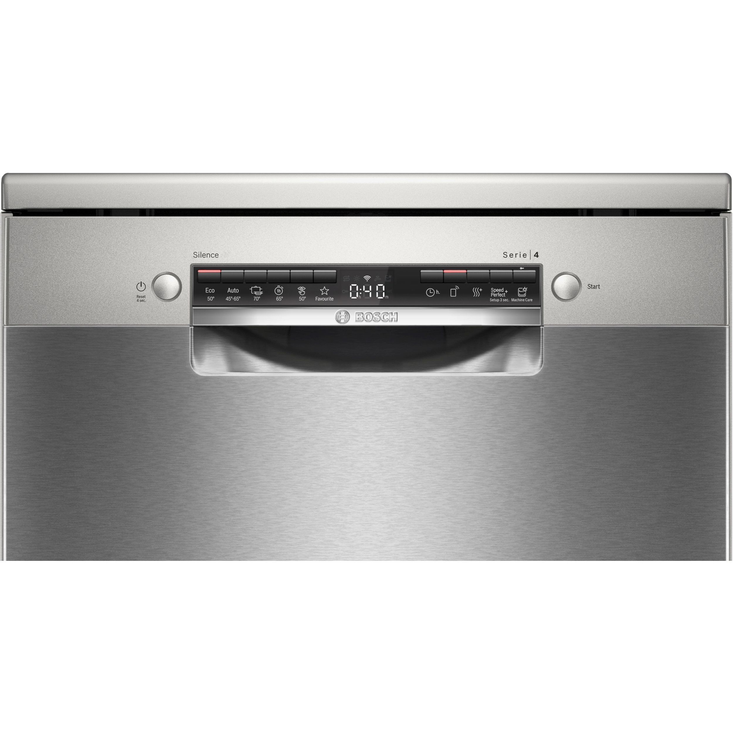 Cu soluția Bosch Anti Amprentă vizibilitatea amprentelor de pe mașina de spălat vase este redusă considerabil.