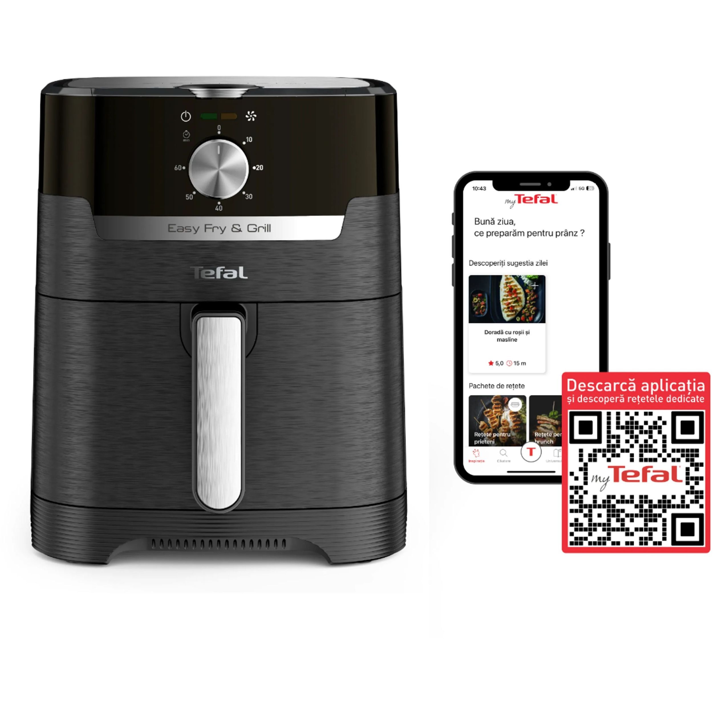 Gătește toate alimentele preferate folosind tehnologia de prăjire cu aer cald Tefal și economisește până la 70% energie electrică*
