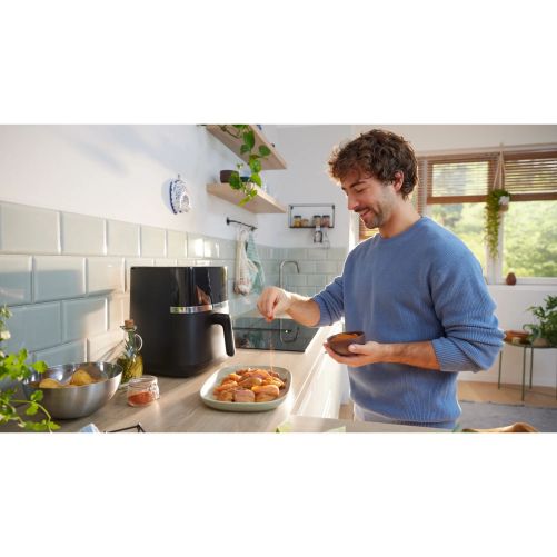 Îți dorești acea textura crocantă, dar ești îngrijorat de ulei și calorii? Friteuza noastră cu aer îți permite să gătești preparatele prăjite preferate folosind cu până la 95%* mai puțin ulei. Asta înseamnă că te poți bucura de gustul și textura crocantă pe care le iubești fără a compromite sănătatea.