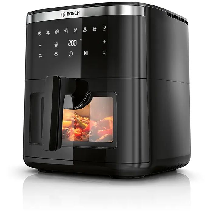 Gătește sănătos cu friteuza cu aer de la BOSCH, deoarece necesită fie deloc, fie foarte puțin ulei datorită circulației rapide a aerului.